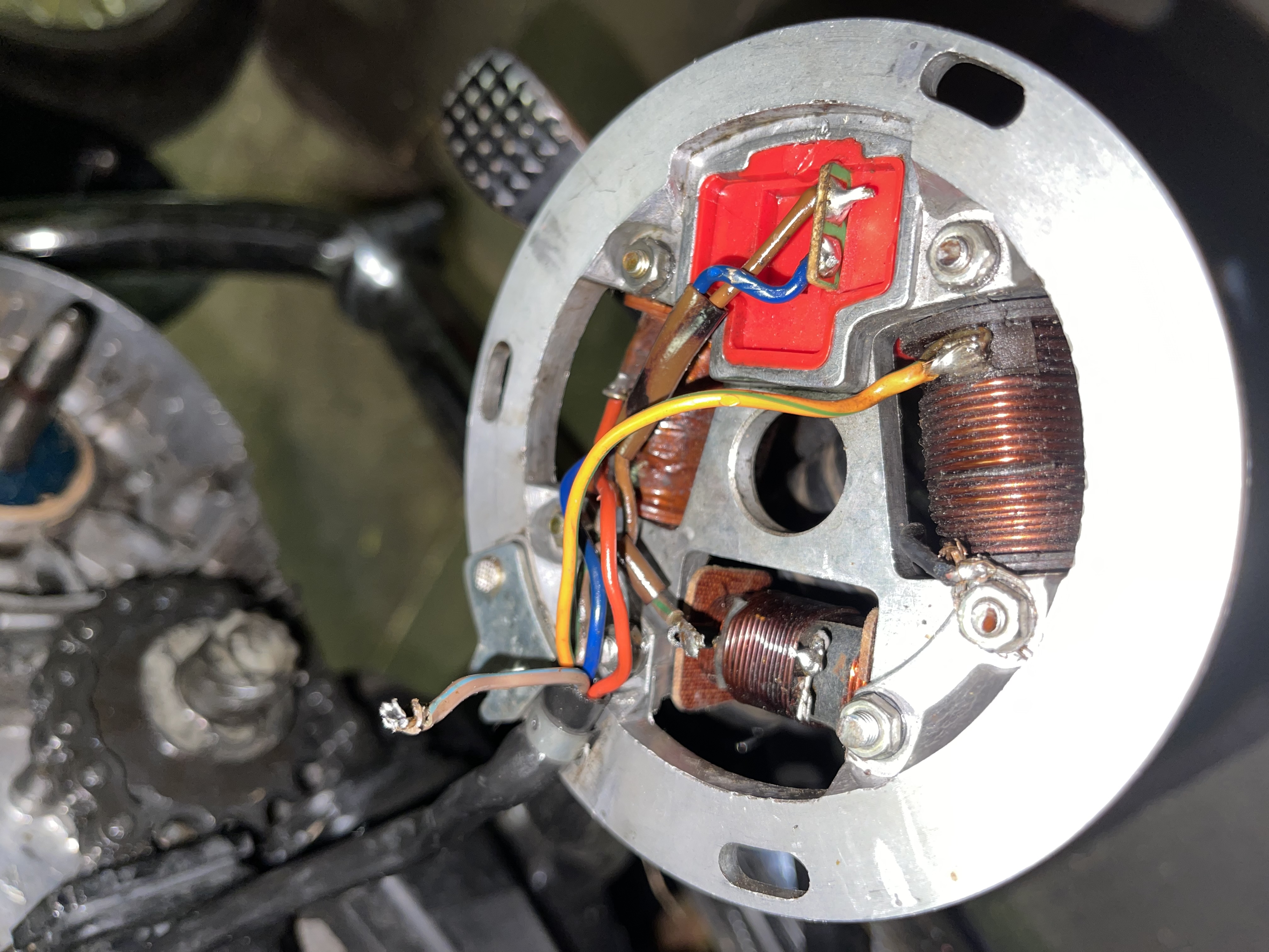 Alsoooo. Mein Sohn hat sich eine S51 Enduro BJ 87 - ist damit gefahren und plötzlich aus - kein Zündfunke. Messungen deuteten auf Zündspule bzw. Etwas auf der Grubdplatte hin. Aufgemacht und gleich gesehen, dass der braune Draht lose ist. Ich dachte der gehört dorthin wo man nun den Lörboppel unten sieht - dass hat aber dazu geführt, dass die Drähte fast am Glühen waren. Habe es mit zig Varianten im Netz verglichen - finde aber das identische Modell und ein Bild der Verdrahtung nicht. Hat jemand eine Idee ? Junior wird schon ungeduldig