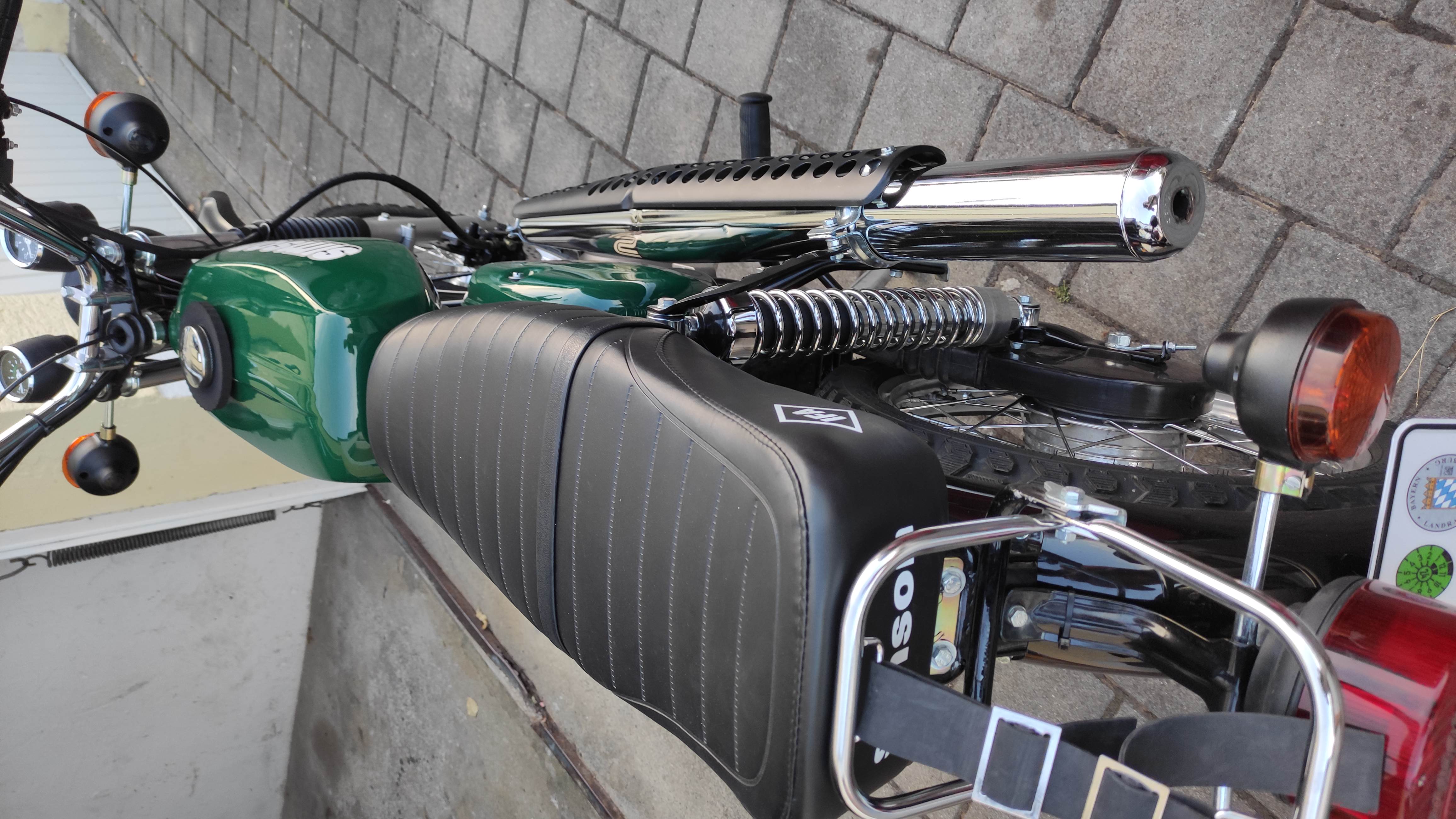 Der Auspuff hängt an einem PZ Big Mike Komplettmotor. Absolute Katastrophe. Kann ich absolut nicht empfehlen. Es war ein Daily Race SP dazu, den ich aber gegen den Daily Race D gewechselt habe, um im 15 PS Limit zu bleiben. Das Drehmomentloch beim Anfahren ist damit vollständig verschwunden, dafür dreht er im Reso Bereich halt 1000 Umdrehungen weniger. Nur die Lautstärke vom D ist echt extrem. Durch Änderungen am Endrohr habe ich sie jedoch abnahmefähig hinbekommen.