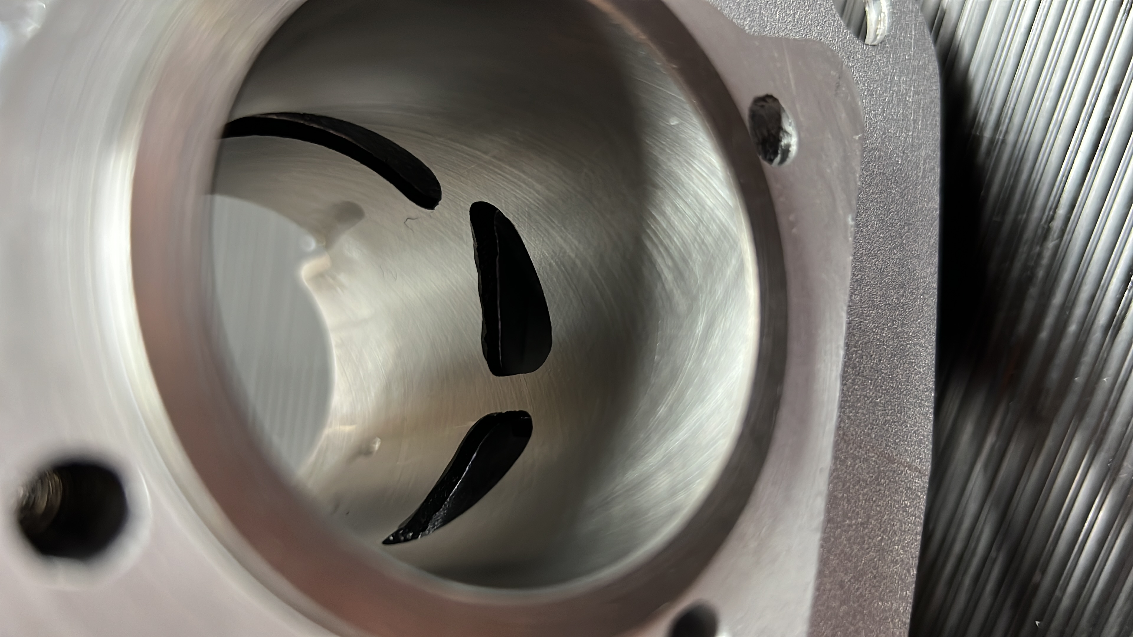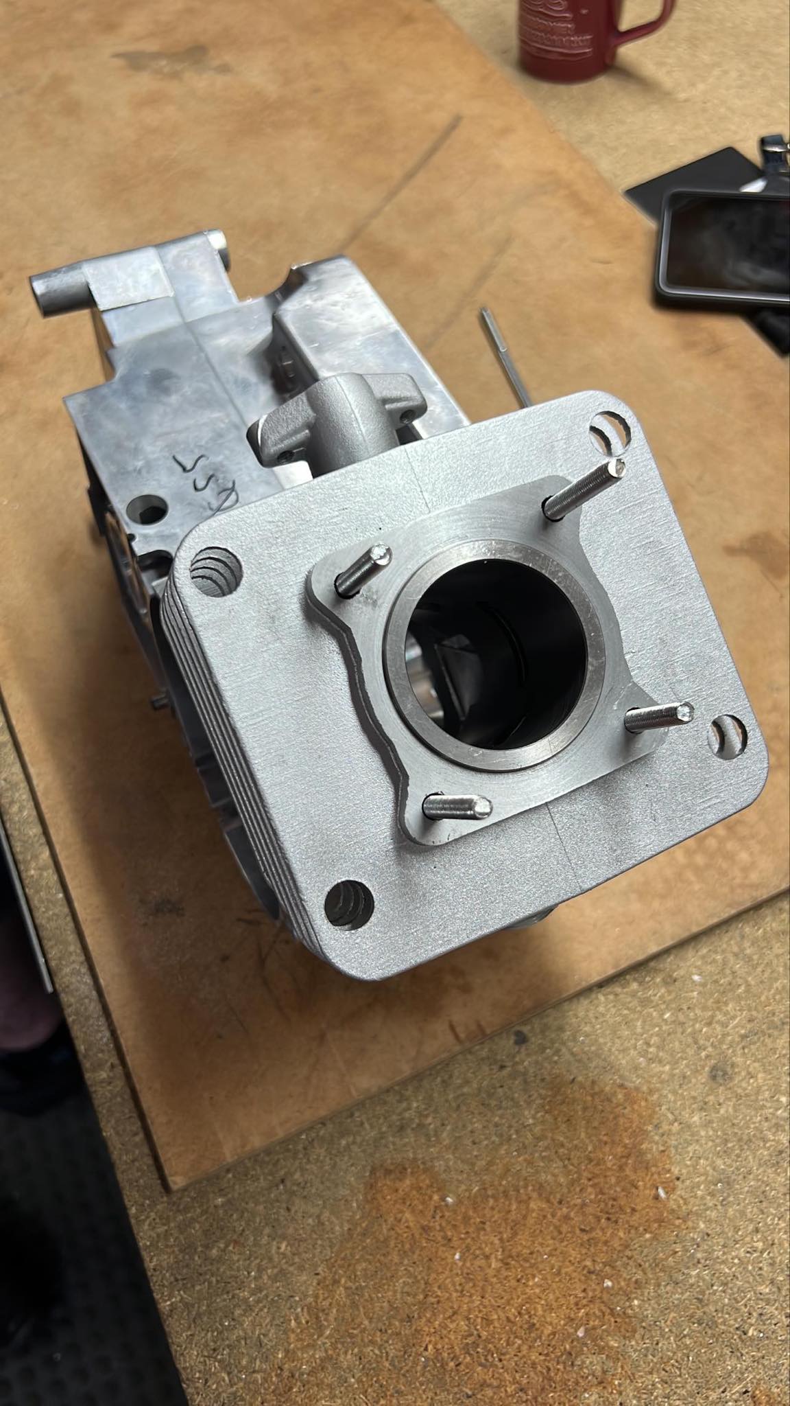 Unser Zylinder kann man ohne abzudrehen einfach auf das Gehäuse stecken und losfahren. Ok entgraten möchte man sicherlich, aber mehr ist es auch nicht. Da liefert der Zylinder schon aus der Tüte sehr beachtliche Leistungswerte. Dabei ist aber jede Spielraum für die Tuner offen. Die Steuerzeiten sind niedrig genug und die Kanalgestaltung modern ausgelegt. Wir haben Platz selbst für 60x60 Stehbolzenabstand umzusetzen und mörderisch grosse Auslässe zu fräsen 💆🏻♂️🥵
