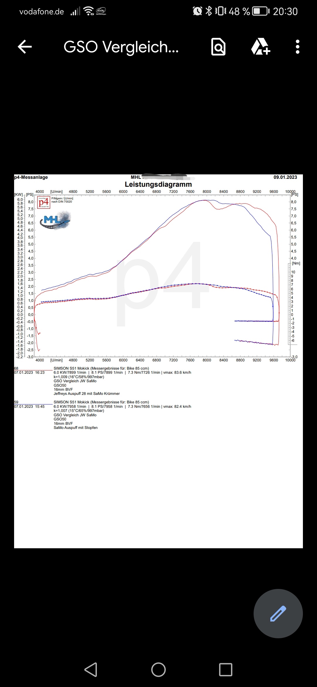 Was mir auffällt, der GSO lief bei uns nicht mit 85er HD, sondern im Bereich um die 78, dann dreht der Motor wesentlich sauberer aus und das Drehmoment wird länger gehalten was auch zu einer fülligeren Kurve im oberen Drehzahlbereich führt.