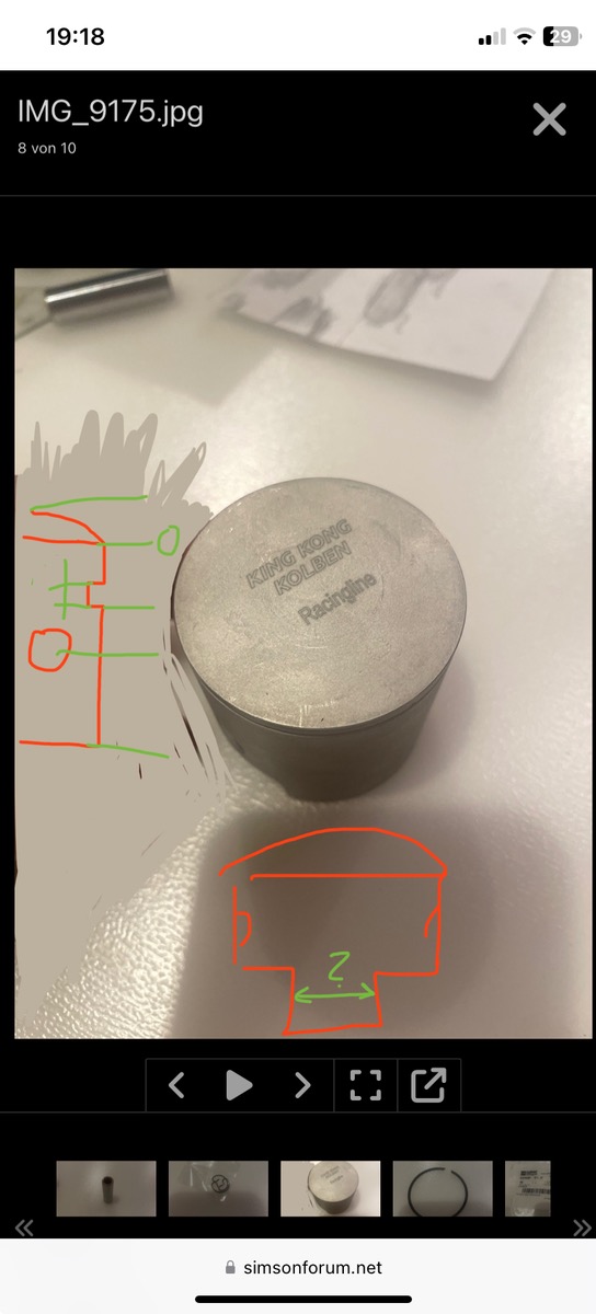 Also bei aller Liebe und Respekt die Hälfte der erfragten Daten zum Kolben stehen bei samo auf der seite oder wir schrieben diese schon, aber hier nochmal zusammengefasst:Dachhöhe = 2.5mm (samoseite)