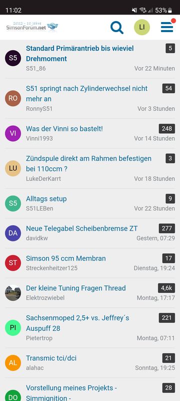 Schau mal oben rechts in der ecke neben dein avatar. Da klickst drauf und dann den reiter „Simson Forum“ da bekommst dann angezeigt wieviel neue beiträge und da drauf dann klicken werden sie einzeln angezeigt