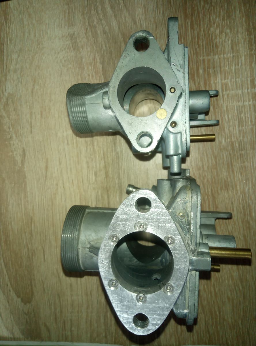 Ich habe ein 21er Bvf und mein umgebauten 27mm BVF für den ZT Stage 3 Flansch zum Vergleich fotografiert. Der Flansch an Zylinder unf Vergaser wird ein Mittelding werden. Man sieht das die Anlagefläche wesentlich größer sein wird. Deshalb glaube ich das es mit der Gummiplatte gut funktionieren wird. Die 6mm Bohrung im Vergaserflansch werde ich wohl größer machen das ich dort Abstandshülsen raufschieben kann, wo ich ganz normale Muttern gegenschraube, und der Vergaser trotzdem beweglich bleibt.