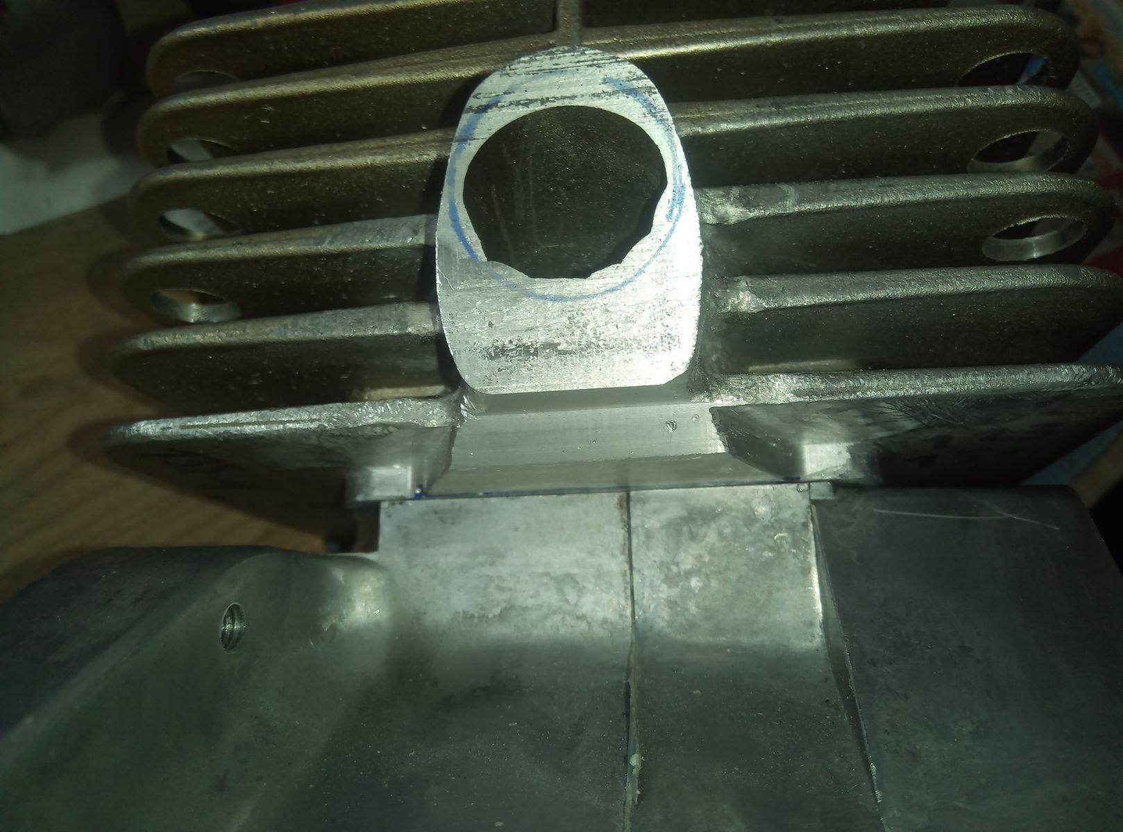 Der Ansaugstutzen soll ja noch wenigstens den eines Simson Zylinders ähneln. Der Vergaser bekommt einen einen etwas größeren Schraubflansch wie ein 16N1-11 Vergaser.