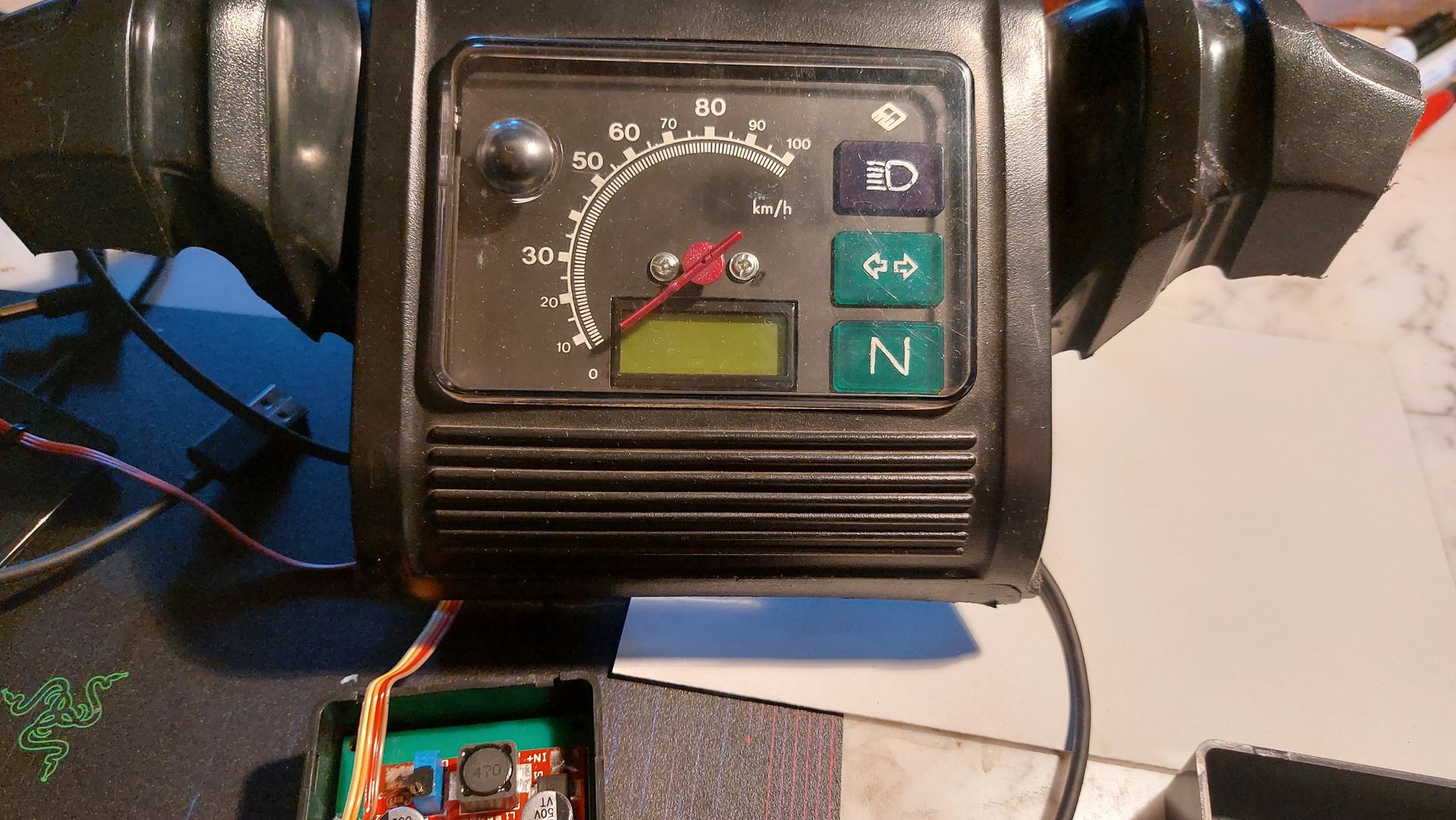 So etwas ähnliches bastel ich mir gerade zu sammen. Allerdings mit einem Servo der die Originale Tachonadel ansteuert. Sowie lcd für Drehzahl, km, Batteriespannung und eventuell auch Ganganzeige. Das ganze findet in einem sr50 Tacho Platz.