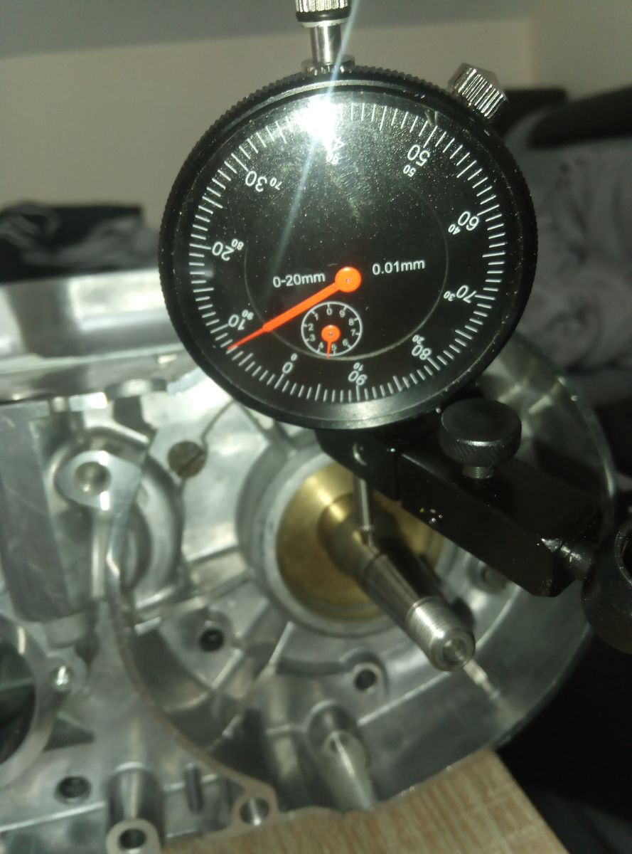 • Ich habe es heute Abend geschafft das Kugellager von der gekauften Rongewelle herunter zu ziehen. Danach ging es gleich in mein gutes Motorgehäuse um erstmal grob zu klären ob die Welle Rundlaufbrobleme hat. Hat sie zum Glück überhaupt nicht. Die ganzen Ansätze laufen ziemlich genau Null. Einfach Mal Glück gehabt.:) Die zweite gute Neuigkeit ist das die Rongewelle mit 13mm breiten Megu Pleuel ausgestattet ist. Das tolle daran ist das trotzdem breite Anlaufscheiben verbaut sind. Also kann ich jetzt auch breite Anlaufscheiben mit meinen 91mm Pleuel fahren.:rockz: