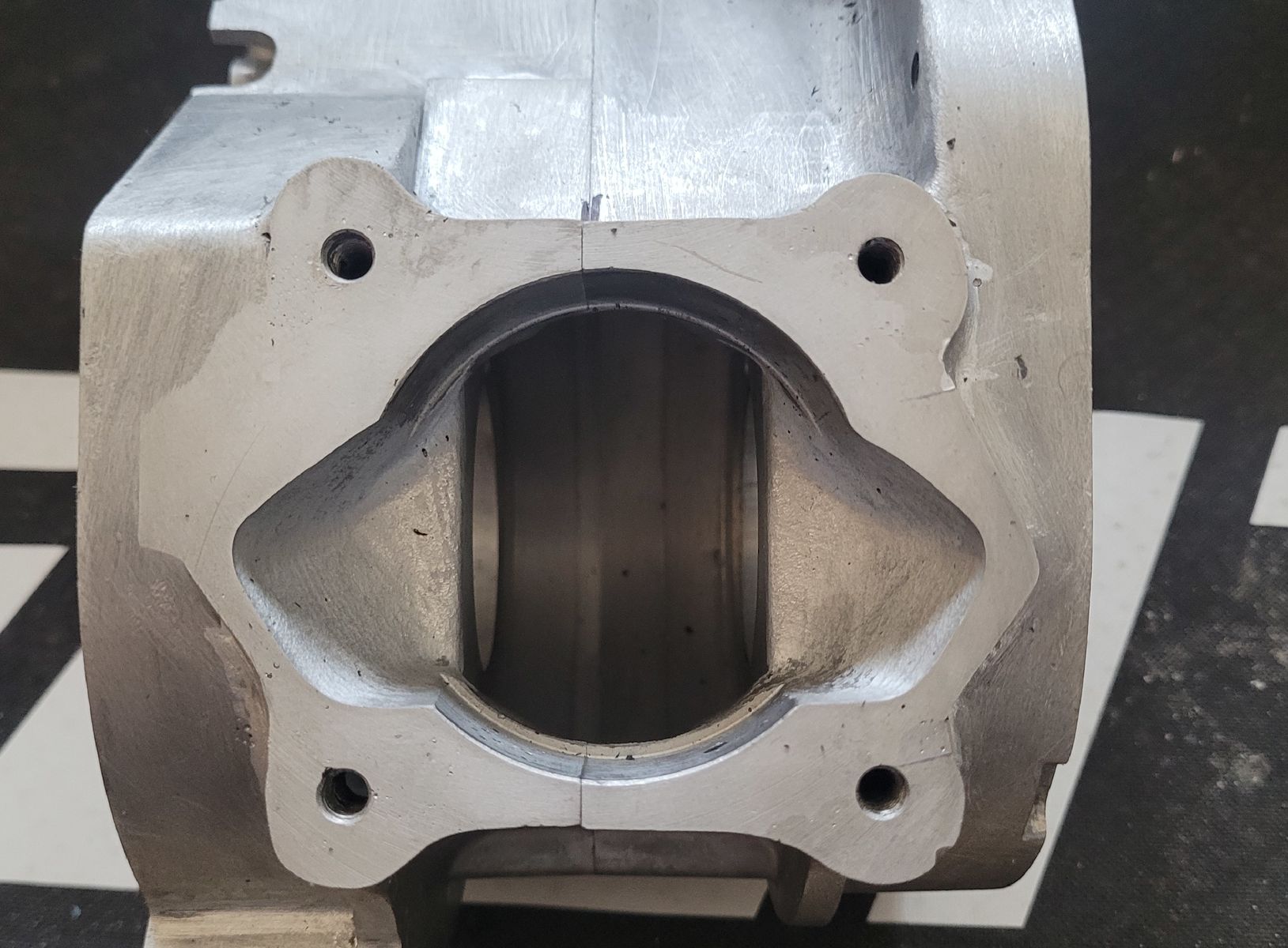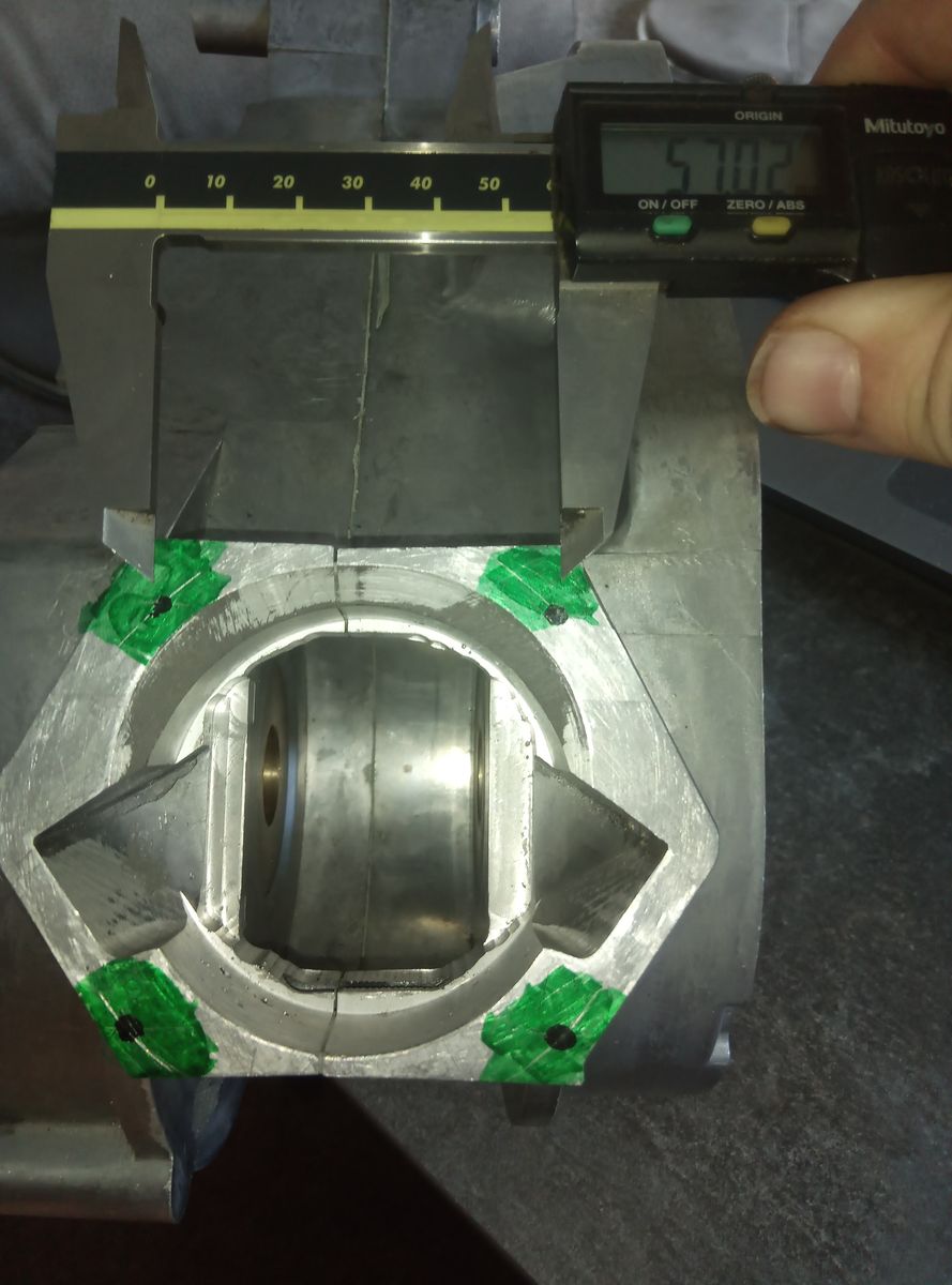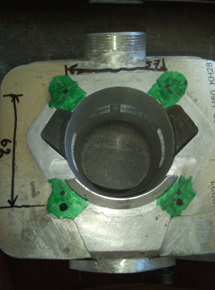 Ich bin jetzt gerade beim festlegen des Stehbolzenabstandes. Original ist ja 50 x 50mm. Der Stehbolzenabstand soll ja nach Möglichkeit so groß wie möglich sein, um den größten Platz für die Kanäle zu haben. Das Bohrmuster soll auf jeden Fall quadratisch und zentrisch zur Buchse sein, um die Kräfte an den Zugankern gleichmäßig aufzunehmen. Vielleicht kann mir bitte jemand schreiben welchen maximalen Stehbolzenabstand man haltbar im Gehäuse unterbringen kann.