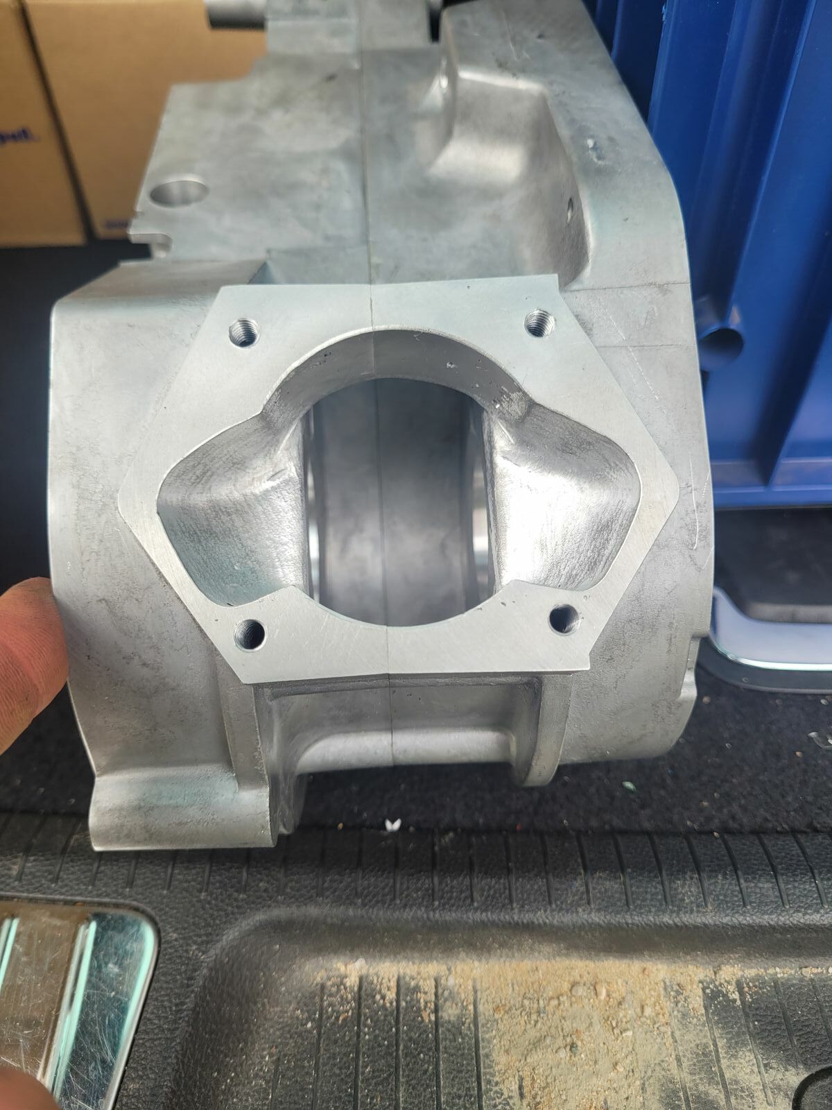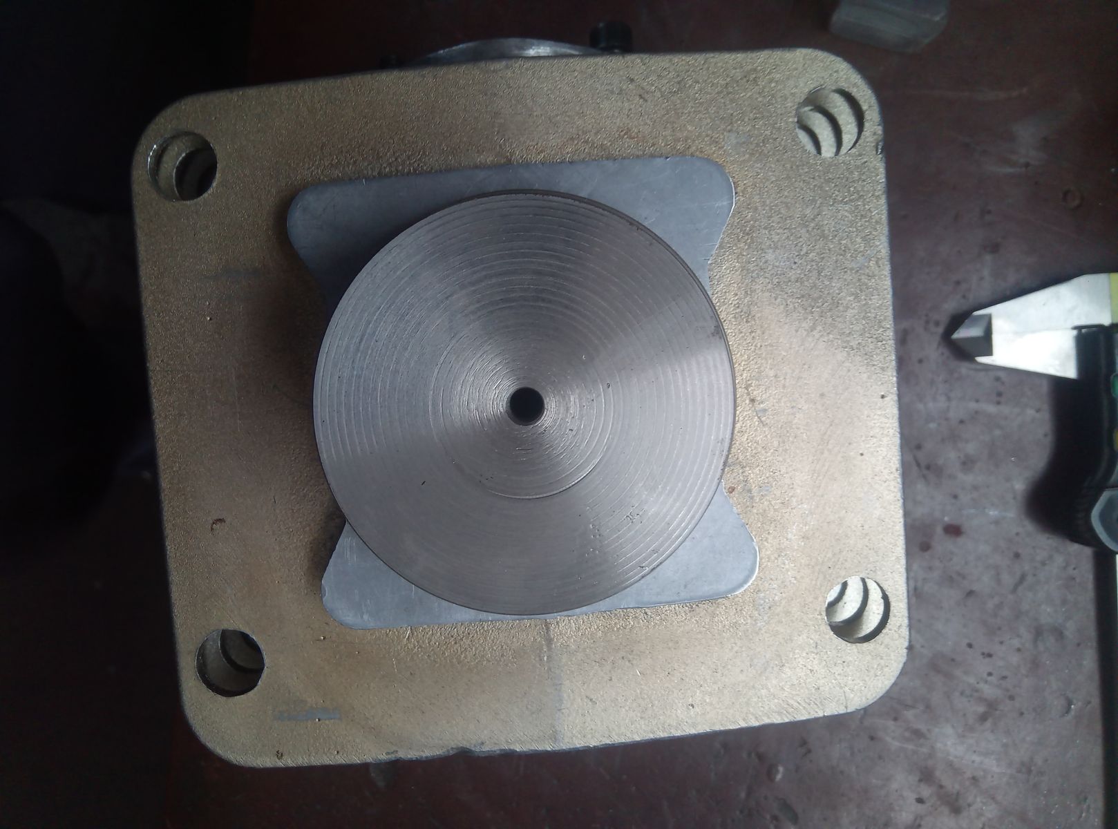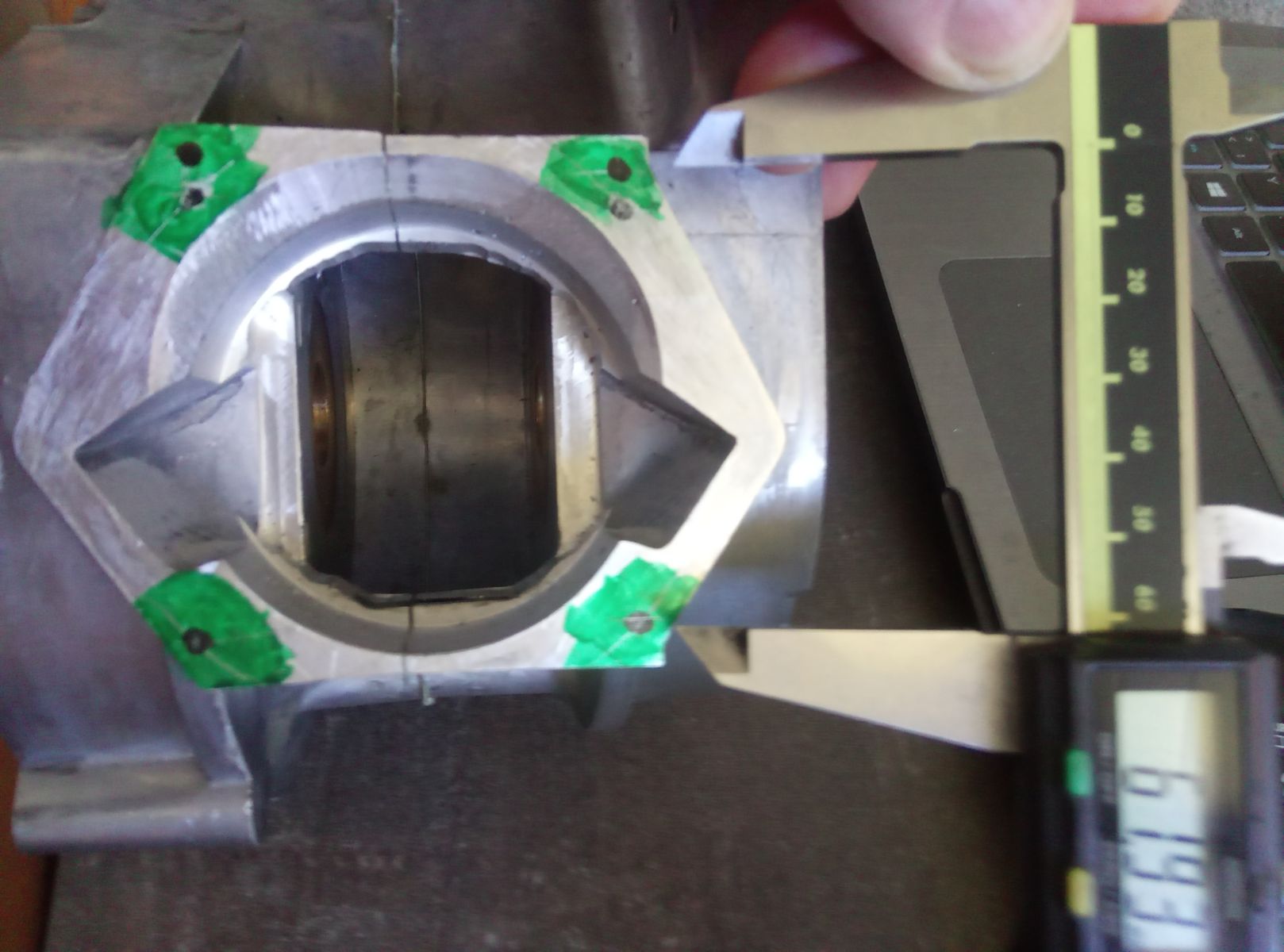 Ich bin jetzt gerade beim festlegen des Stehbolzenabstandes. Original ist ja 50 x 50mm. Der Stehbolzenabstand soll ja nach Möglichkeit so groß wie möglich sein, um den größten Platz für die Kanäle zu haben. Das Bohrmuster soll auf jeden Fall quadratisch und zentrisch zur Buchse sein, um die Kräfte an den Zugankern gleichmäßig aufzunehmen. Vielleicht kann mir bitte jemand schreiben welchen maximalen Stehbolzenabstand man haltbar im Gehäuse unterbringen kann.