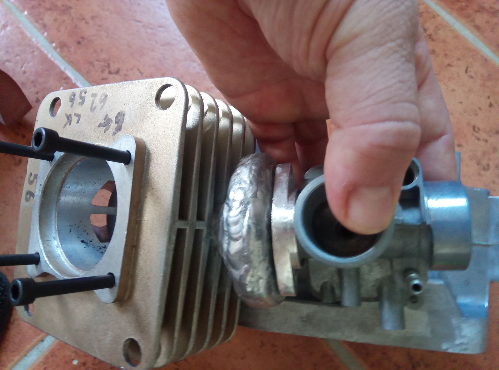 Die Schweißteile sind abgeholt, und Bilder habe ich auch noch gemacht. Sieht aus als würde es jetzt ausreichen. Die Dichtung auf den Kopf ist die Kontur und Bohrbild von meinen Zylinder.