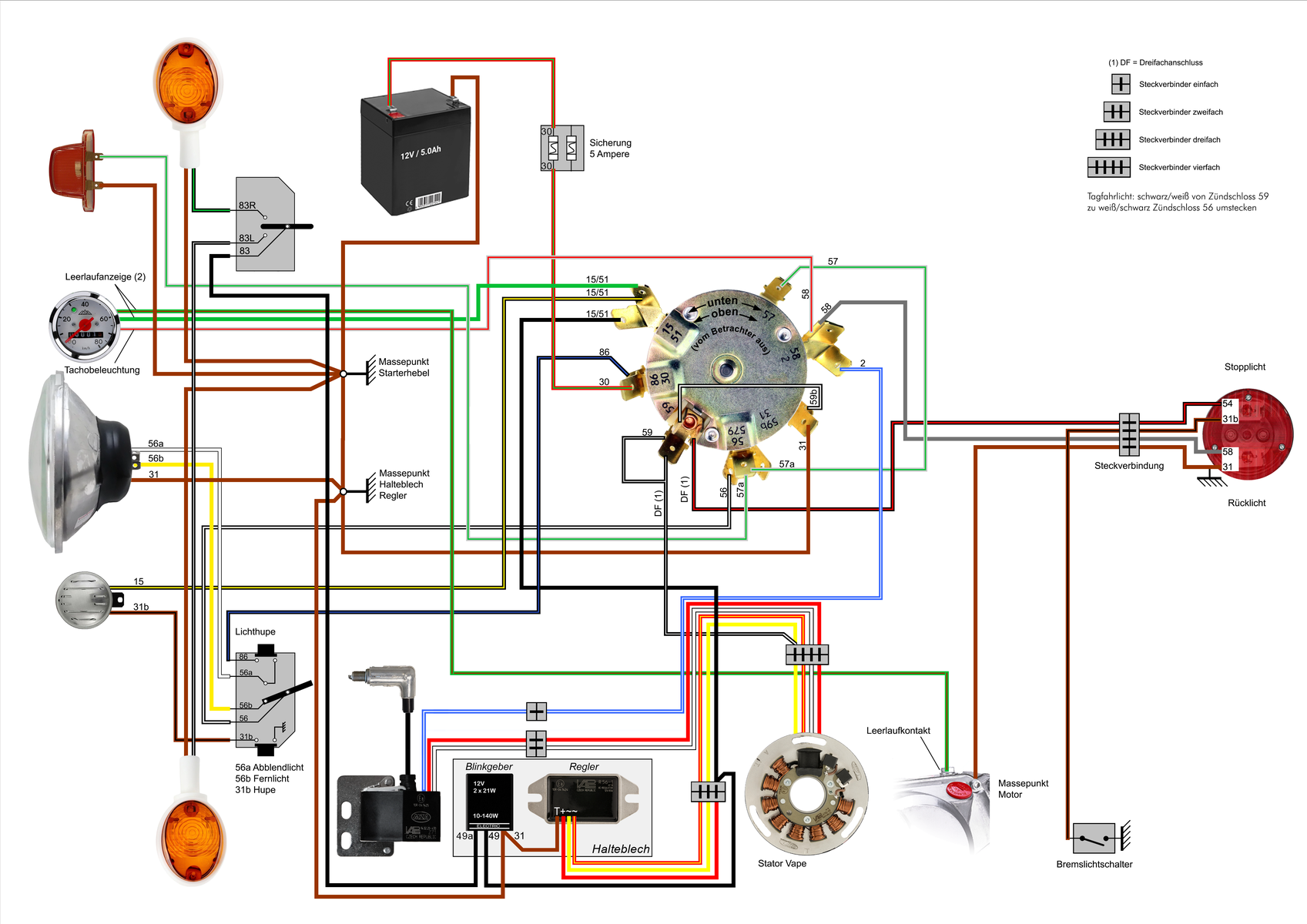 Ich denke, dass jeder, der Elektrik am Moppi machen will, auch meinen Hinweis versteht. Bissel Eigenverantwortung sollte man dem Hobbyschrauber überlassen. Ansonsten kann er fragen oder Fachleute bemühen. Es gibt ja auch Leutz, die zwei Virenscanner am Rechner wachen lassen, um doppelt sicher zu sein - sollen sie! Jeder so, wie er es mag.