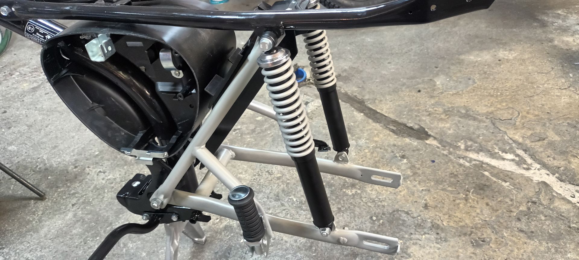 Das sind die letzten Details (Schalldämpfer, Lenkerkonsolen, Sitzlehne). Der wichtigste, schwierigste Teil der Arbeit liegt bereits hinter uns. Es bleibt übrig, die Felgen zu polieren, und Sie können sich auf die Montage des Mokiks konzentrieren.