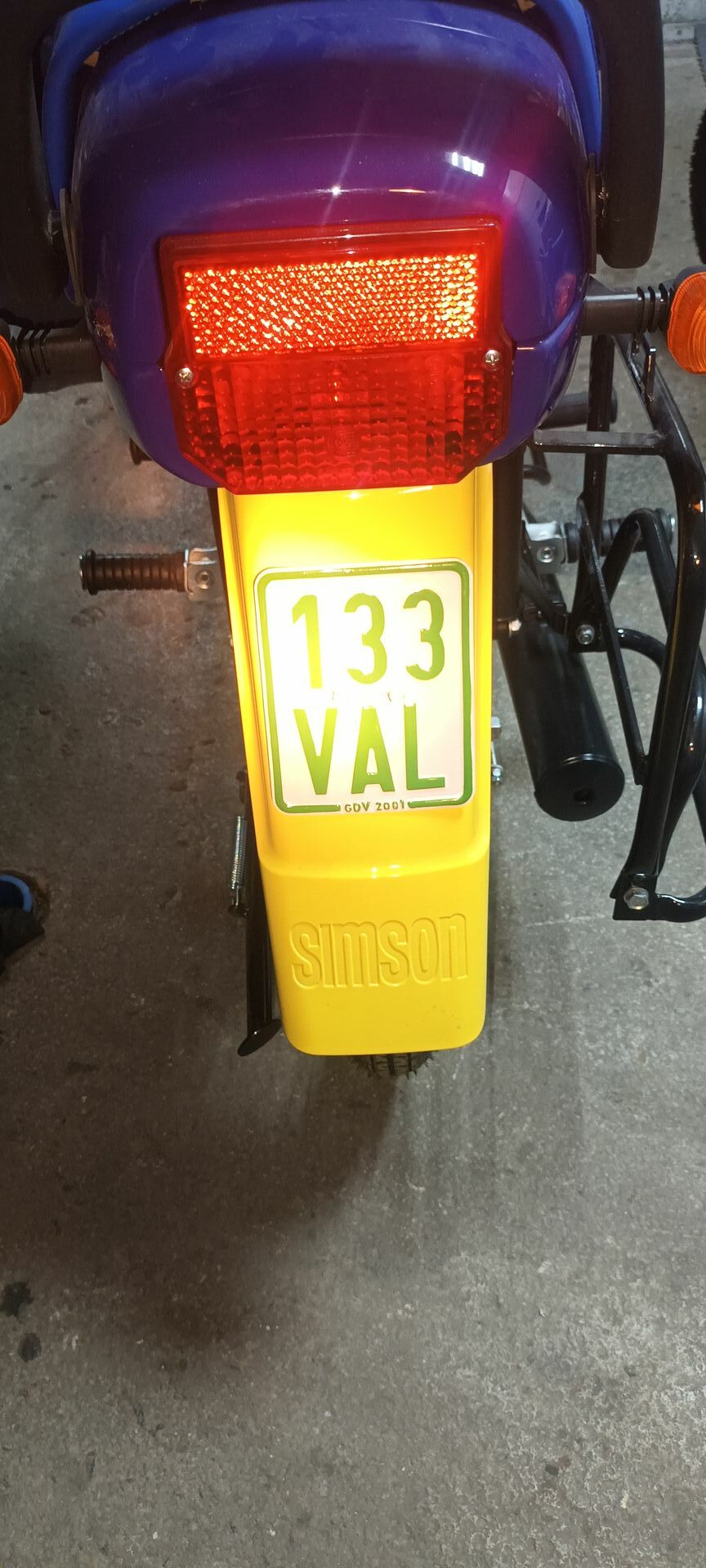 • Bei uns in Russland sind Mopeds und Mokiks nicht registriert, dementsprechend ist kein Nummernschild auf der Rückseite erforderlich. Aber um das ganze Bild zu ergänzen, habe ich beschlossen, auch die alte deutsche Nummer zu renovieren. Ich habe versucht, den Hintergrund mit reflektierendem Effekt neu zu erstellen.