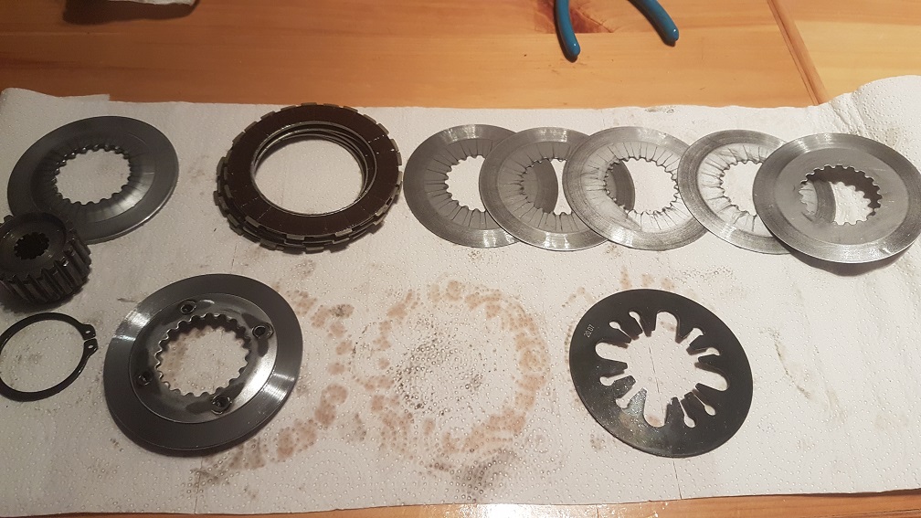 Die Kupplungsplatte ist nicht original, sondern ein umgebauter Druckring von der Fa. RZT. Der Hintergrund ist eine Reibflächenvergrößerung der eigentlichen Kupplungsplatte.