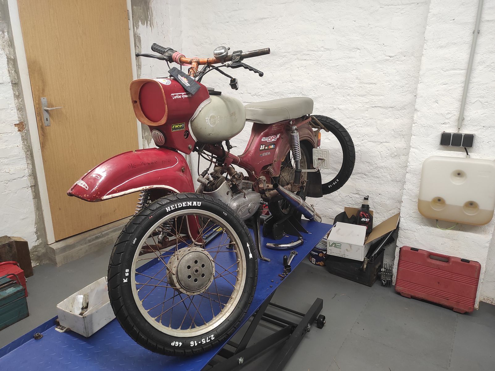 Daher habe ich meinen Star aus der Scheune gekramt. In den 20 Jahre, die er in meinem Besitz ist, hat er mir viele Kilometer erst als Wintermoped (da ich ein Knieblech dazu bekam) und später als Alltagsmoped am Studienort gedient, als ich mir kein Auto leisten konnte.
