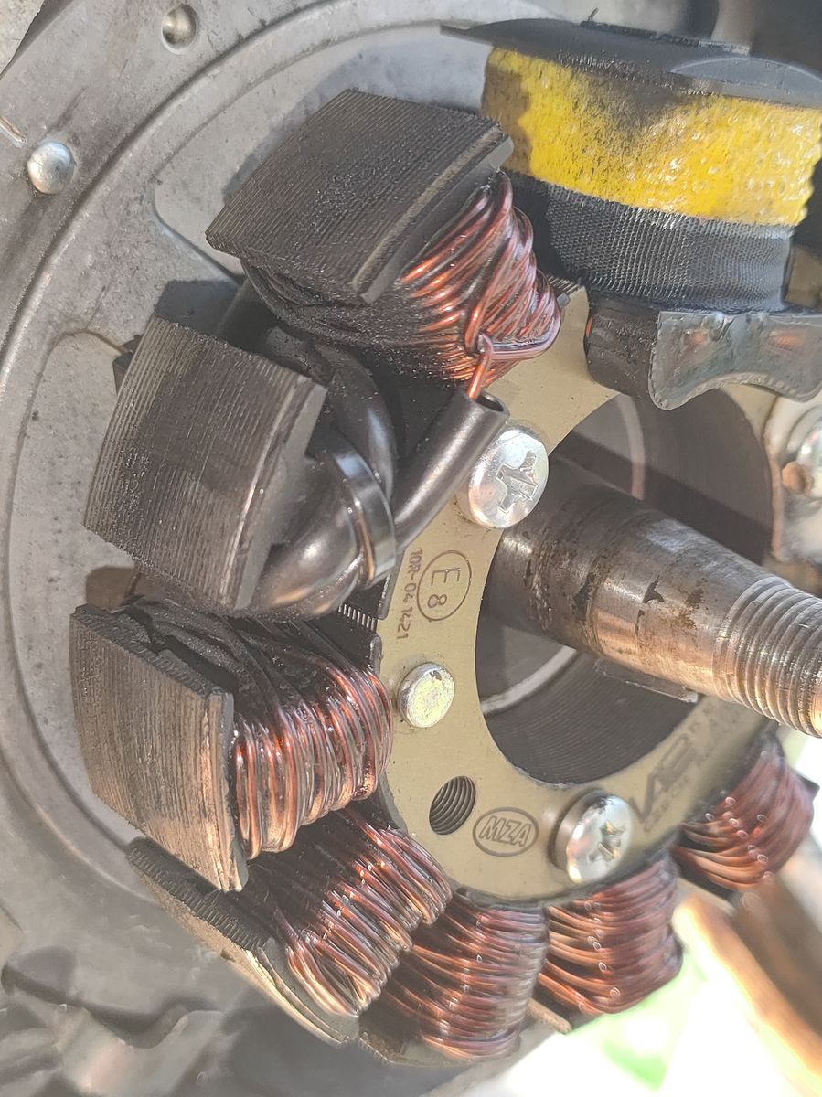 Die Zündung habe ich auch neu eingestellt, dabei ist mir aufgefallen, dass die Grundplatte komplett locker war (dadurch hat sie schon ein paar Abriebsspuren überall, an Magneten, am Polrad usw.), ich hab sie festgemacht und alles neu justiert.