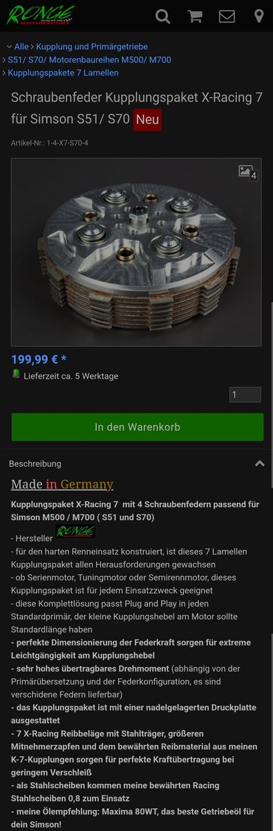Das schaut echt gut aus, hatte von Ronge auch mal ein Set Scheiben und den optimierten Druckring für eine 5lamelle mit 1.6er TF, ging besser wie das ZToriginal