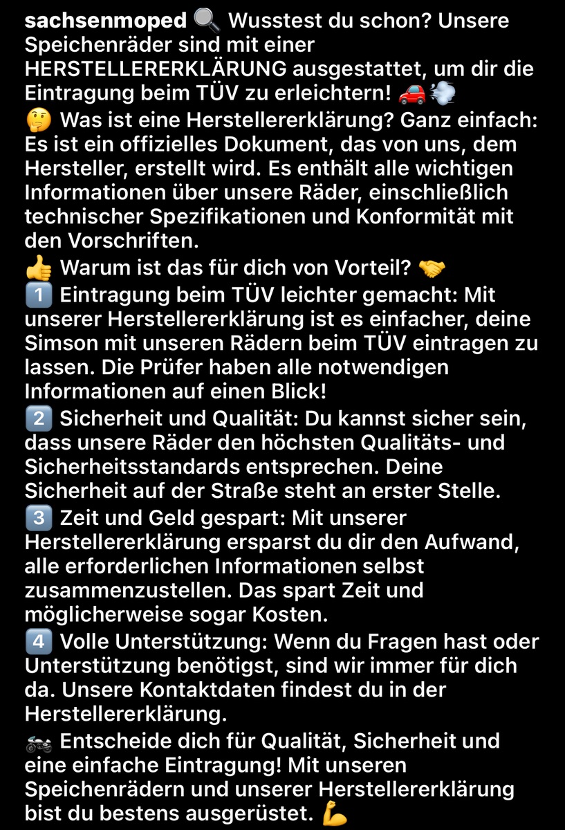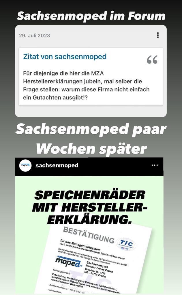 • Naja nicht ganz. Die frage die hier zu klären wäre, würde ein Originales DDR Rad der Prüfung standhalten? Das konnte aktuell noch keiner beantworten und gestaltet sich auch schwierig mit der Überprüfung. SaMo sagt ja es würde mind. dem Original entsprechen.