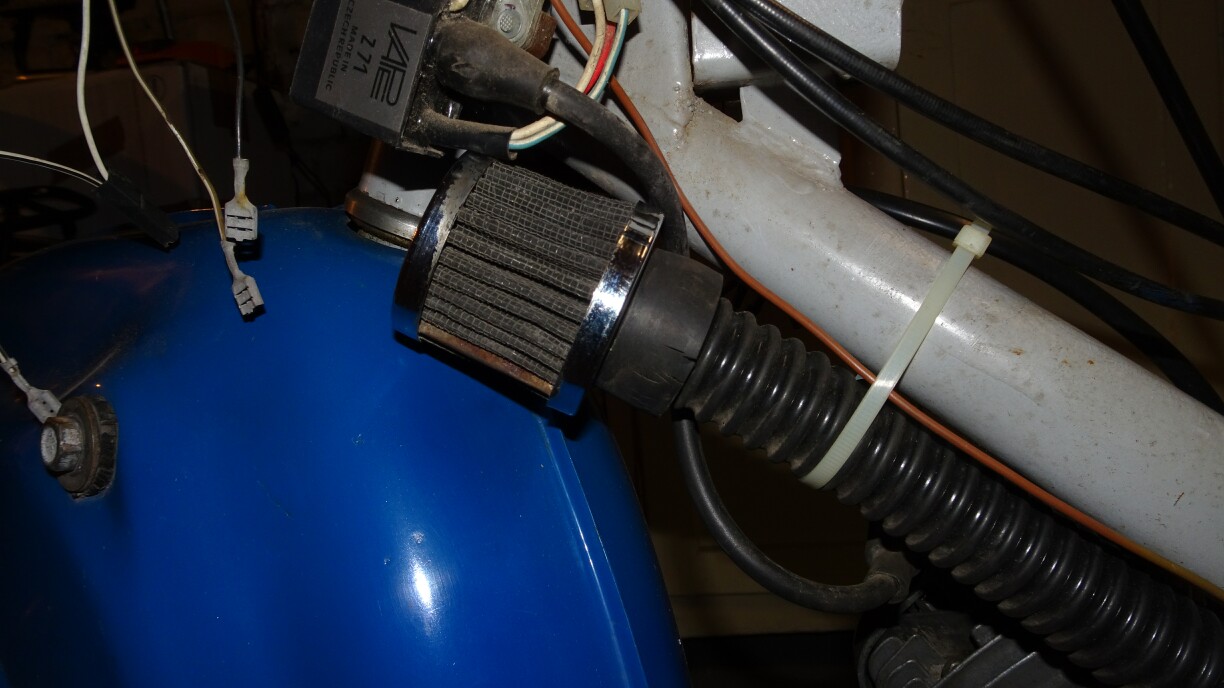 Luftfilter war nach Moto-Selmer umgebaut plus 45er Rohr am Kasten.