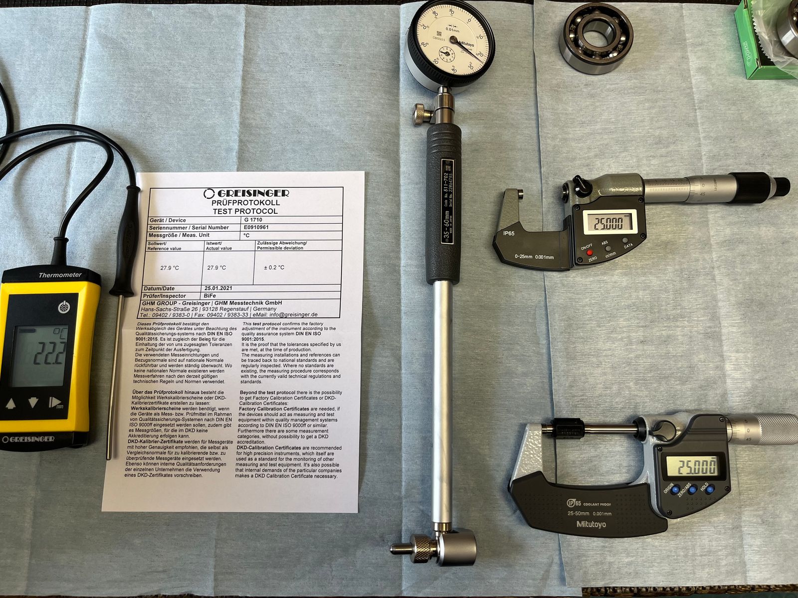 In der Werkstatt sind durchgängig 21 Grad, die zu messenden Lager/Gehäuse inklusive der oben dargestellten Messmittel lagen mindestens 4 Stunden in der Werkstatt um sich der Temperatur anzugleichen. Die Temperatur wurde beim messen vorher immer mittels Kontaktthermometer geprüft.