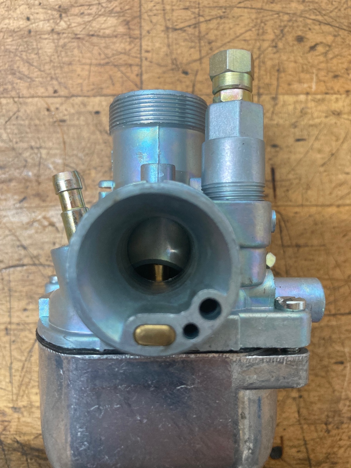 Am unteren Teil der Nadeldüse, da wo die HD eingeschraubt wird, bis ein wenig über die Hälfte vom Sechskant, so dass man die ND mit einen Schlüssel noch einschrauben kann. Erklärung: die Nadeldüse sitzt im unteren Bereich der Vergaserwanne in der Vertiefung oder in der Ablassschraube. Es kann vorkommen, dass an der Stelle die ND anliegt. Folge: durch Vibration ect. aufschäumen von Benzin.
