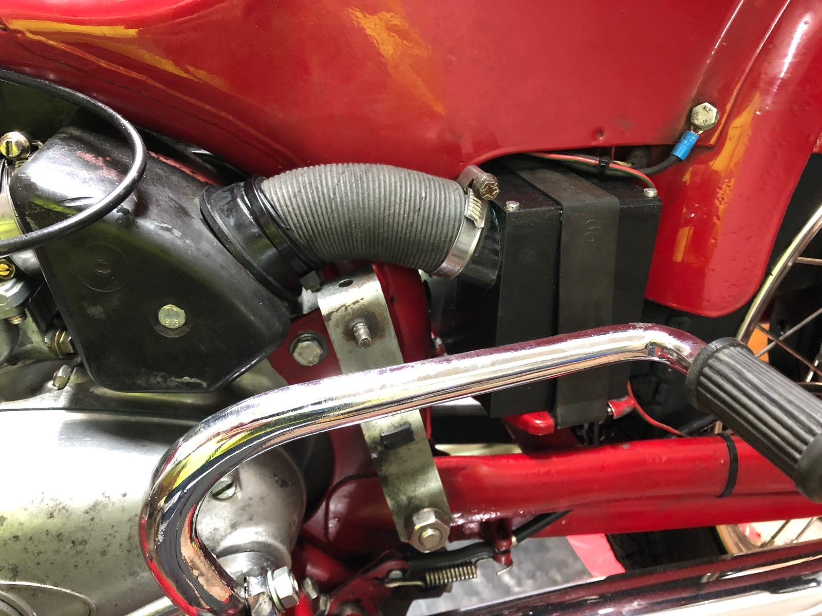 Ich finde alte Fotos, wo der originale Schlauch bei der Probefahrt provisorisch wieder montiert wurde und auch später weiterhin montiert ist.