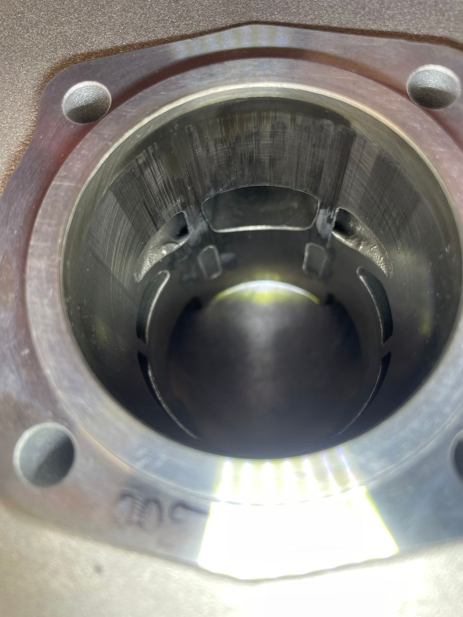 Am Zylinder selber hab ich noch keine Aluspuren vom Kolben beseitigt, allerdings sieht man dort auch, das an den Stegen am Auslass wohl auch die Beschichtung aufgegeben hat.