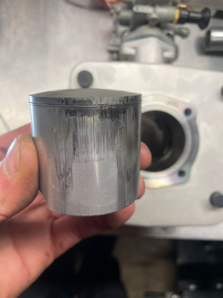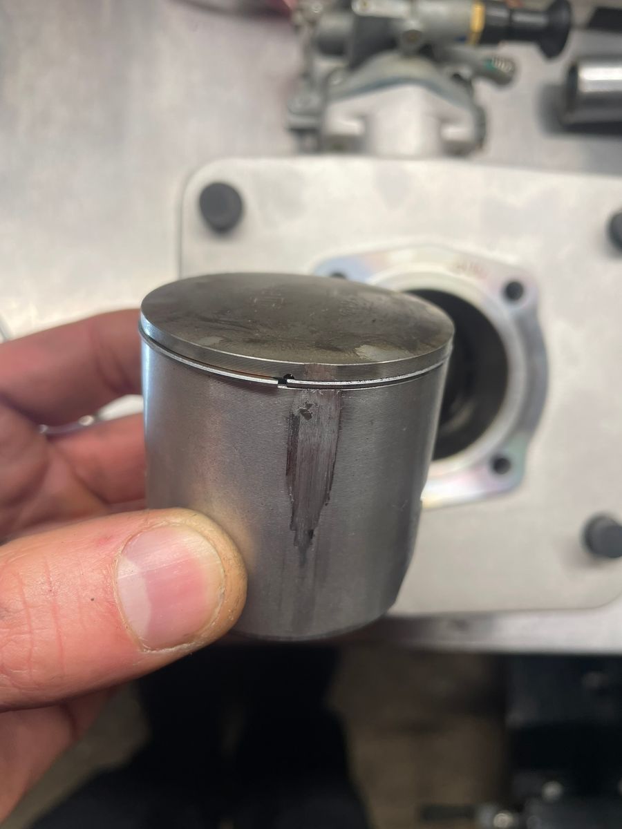 Hitzeklemmer über den gesamten Auslassbereich und ein leichten Klemmer überm Einlass wo auch offensichtlich die Beschichtung abgeplatzt ist und sich in den Kolben gearbeitet hat, darunter augenscheinlich Lunker im Guss.