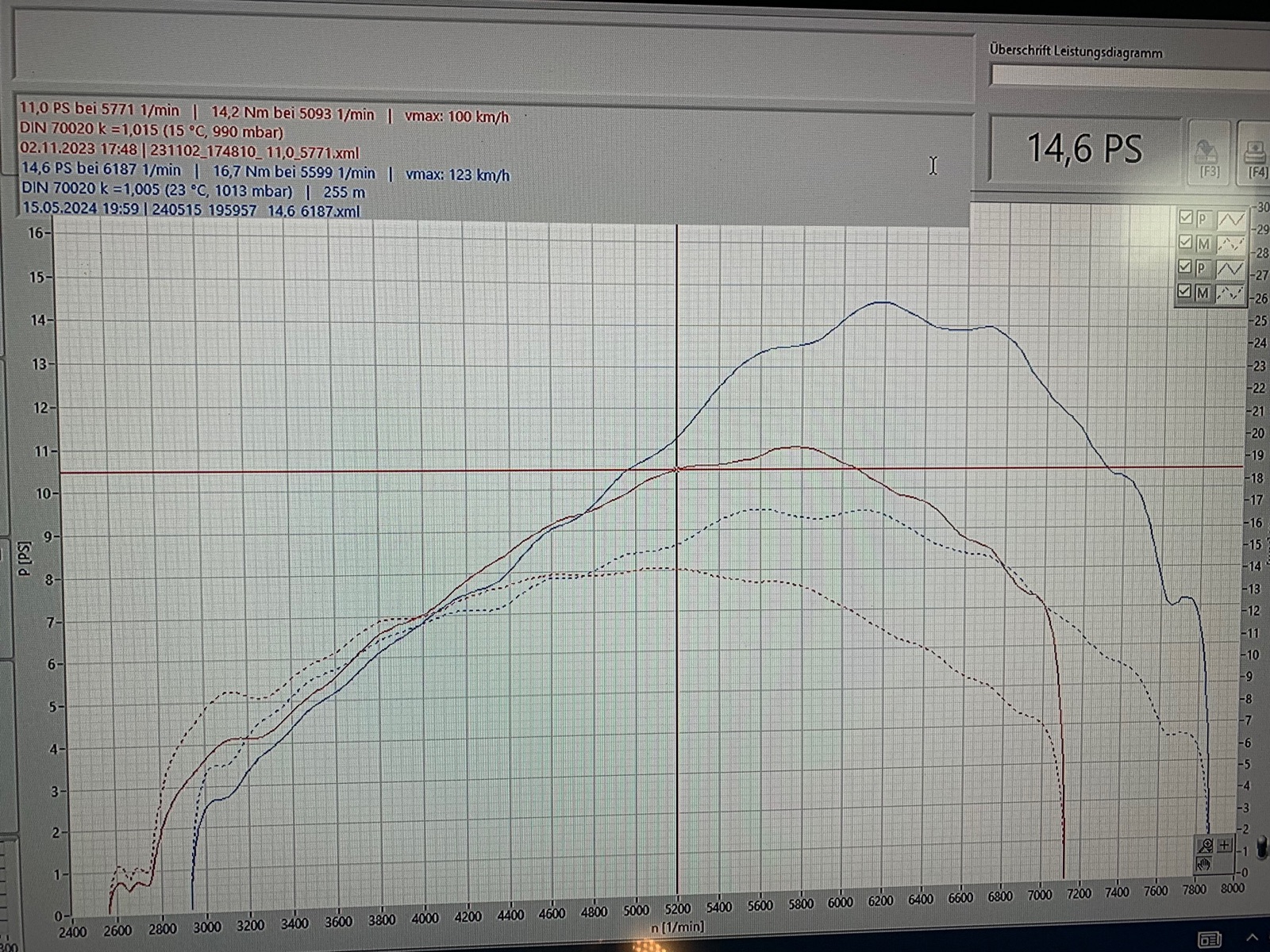 Der DailyRace SP hat MINIMAL mehr Leistung als der AOA4 gebracht. Der Überdrehbereich war besser als mit AOA4, jedoch hat dieser Auspuff untenrum ein heftiges Loch gemacht. Unter 6500upm war hier garnichts los. Hier verhält sich der AOA4 in Summe deutlich besser. Wem die Fahrwerte mit AOA4 nicht ausreichen, der ist mit LTM deutlich besser bedient als mit DailyRace SP.