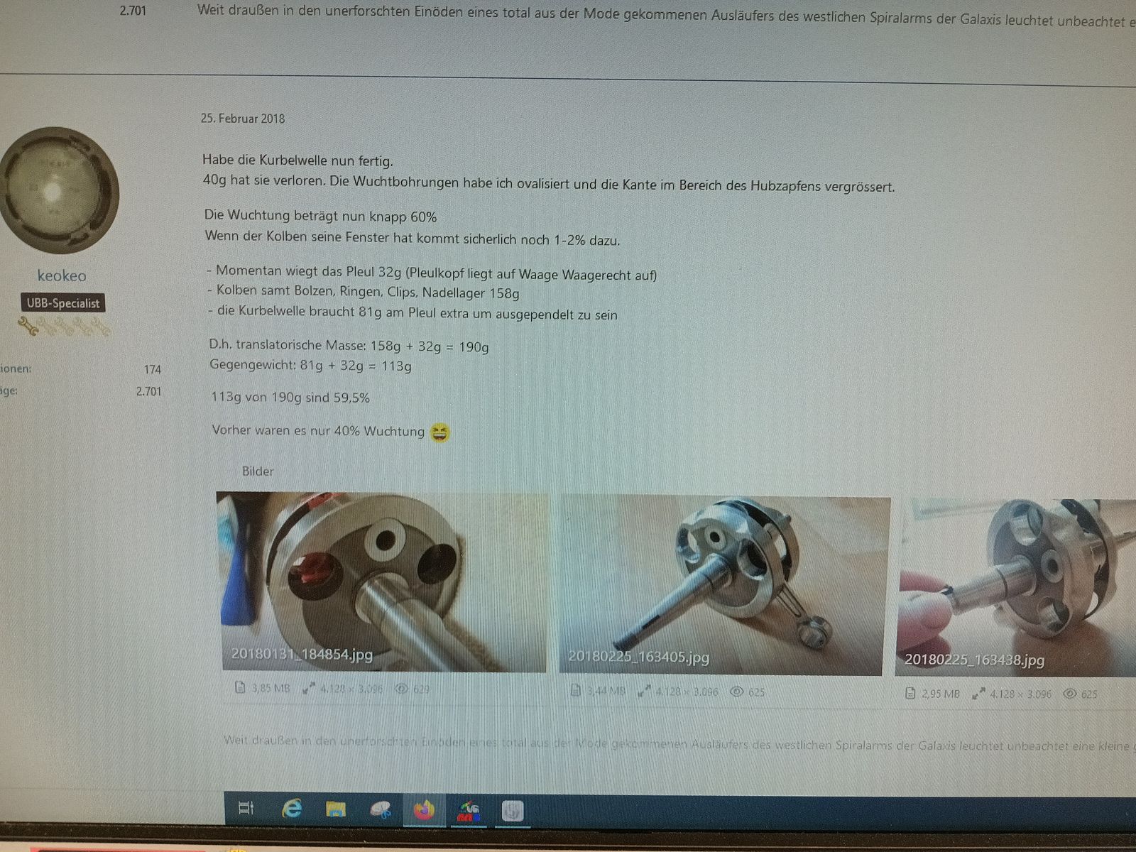 Ah ok. Aber aktuell ist an den Wangen wie auch den Pleuel nichts geändert worden. Wir haben 2024 nur die Art der Wuchtung geändert (also nicht das Wuchtverhältnis, sondern wie wir den Massenausgleich machen, davor durch erleichtern der Pleuelseite, jetzt durch Schwermetall auf der Gegenseite), die Basis der Hubwangen ist identisch seit einigen Jahren.