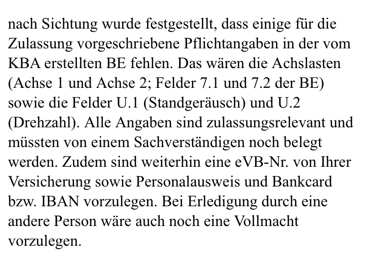 ich möchte mir einen Sperber zulegen, der wie wohl zu erwarten war, keine Papiere hat. Der Verkäufer hat ein Datenblatt vom KBA erhalten. Da der Sperber ja eine Zulassung benötigt, reicht eine Einzelabnahme aus ? Welche Schwierigkeiten kann ich erwarten ?