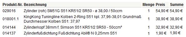 Für 39 € in Ordnung. Ich würde beim nächsten Zylinder jedoch einen Barikit-Kolben in 37,97 mm von LangTuning oder ZT-Tuning empfehlen. Die 4 € Aufpreis sind es wert.