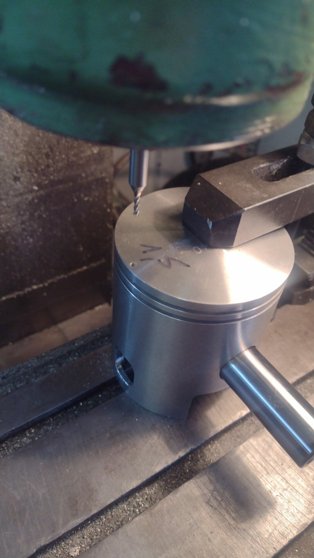 So es geht weiter. In den letzten Wochen hatte ich leider kaum Zeit für das Projekt. Ich hab die Zylinder jetzt aber zum beschichten geschickt und die Ringpins an dem Kolben umgesetzt- siehe Bilder. Als neuen Pin hab ich Nadeln von einem Nadellager von einer ETZ genutzt. Diese wurden unten in dem freigebohrten Loch dann ausgeglüht und ein Stück rumgebogen. Damit ist sichergestellt, dass die nicht wieder raus kommen. Gingen aber so schon sehr straff rein (1,9mm gebohrt; 2mm Nadeln). -