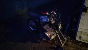 Ich hab leider kein besseres Bild davon. Das Moped besteht zum Großteil aus alten/ Schrottteilen. Der Rahmen war mal ein TS150 Rahmen, der vorne aufgesägt wurde. Die Schwinge ist von der ETZ250 und die Radnabe und der Kettenantrieb vom Moped (hinten 31 Zahn vom Roller). Das Getriebe hätte es im echten Leben schon lange hinter sich, für das Moped reicht das aber wahrscheinlich noch jahrzehnte. Auch der Anlasser ist eigentlich fertig. Der Mopedtank stammt von einem alten Crossmoped und hat überall Dellen. Das Rad hinten habe ich neu einspeichen lassen, aber auch nur, weil ich nix passendes da hatte. Ich hab bewusst die Übersetzung so lang wie möglich gewählt, um die Beschleunigungszeit auf dem Motorradprüfstand irgendwie in "normale" Verhältnisse zu bringen. Außerdem reduziert man so die Kräfte auf den Antrieb.