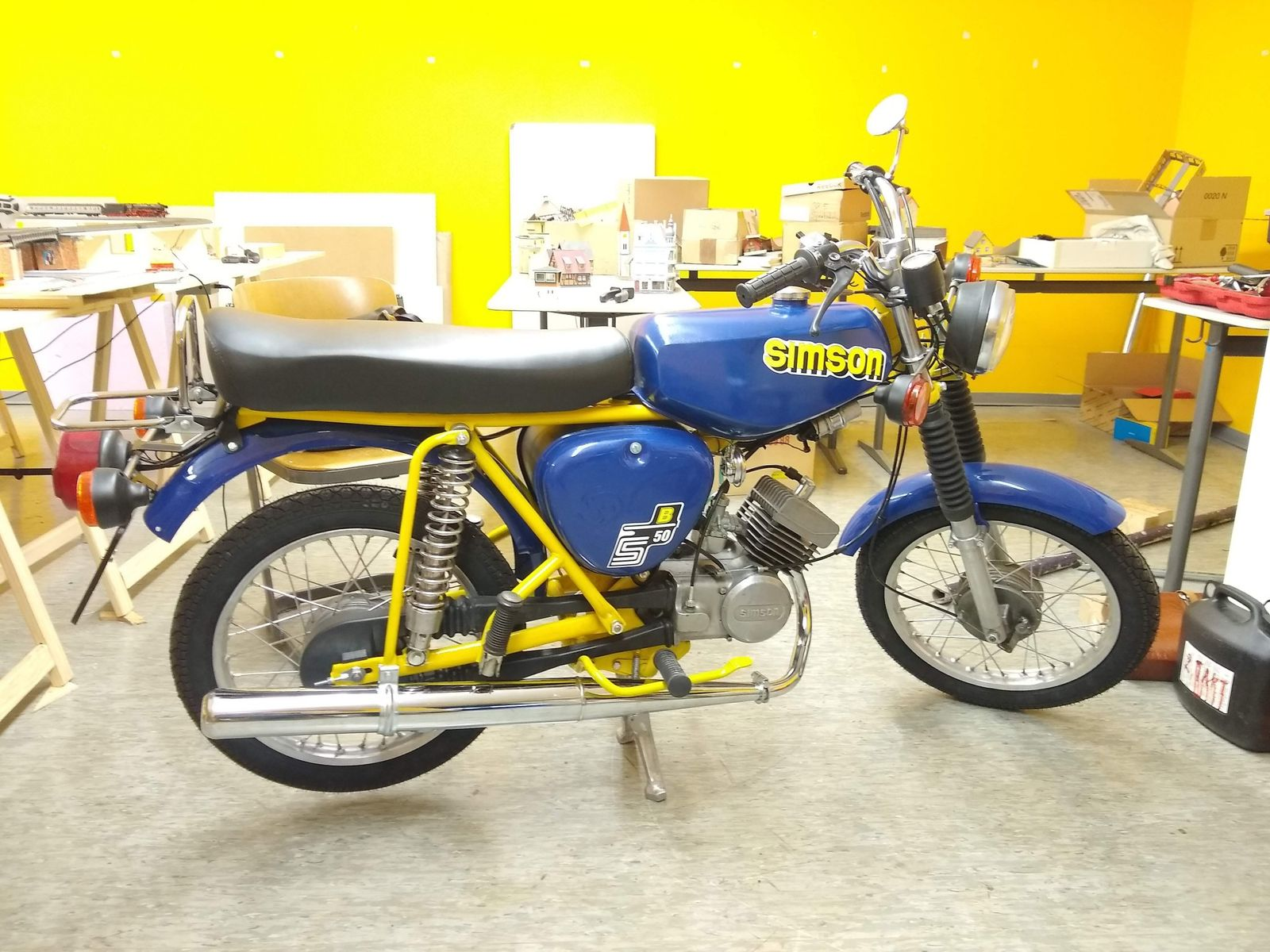 Zwischen Donnerstag, 13.6. und Montag, 17.6. wurde meine Simson S50 wahrscheinlich gestohlen oder, vielleicht als Scherz, umgestellt. Sie war an der Ecke Forststraße/Scheffelstraße unter der Kastanie vor den Fahrradbügeln geparkt. Wenn jemand etwas beobachtet hat oder weiß, wo sie steht oder in welchem Gebüsch sie liegt, bitte melden!