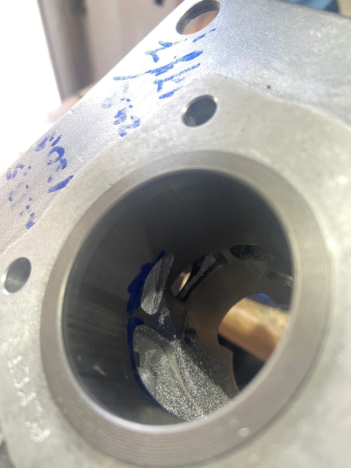 Ja Einlass so hoch fräsen, dass der Kolbenring nicht einfedern kann.