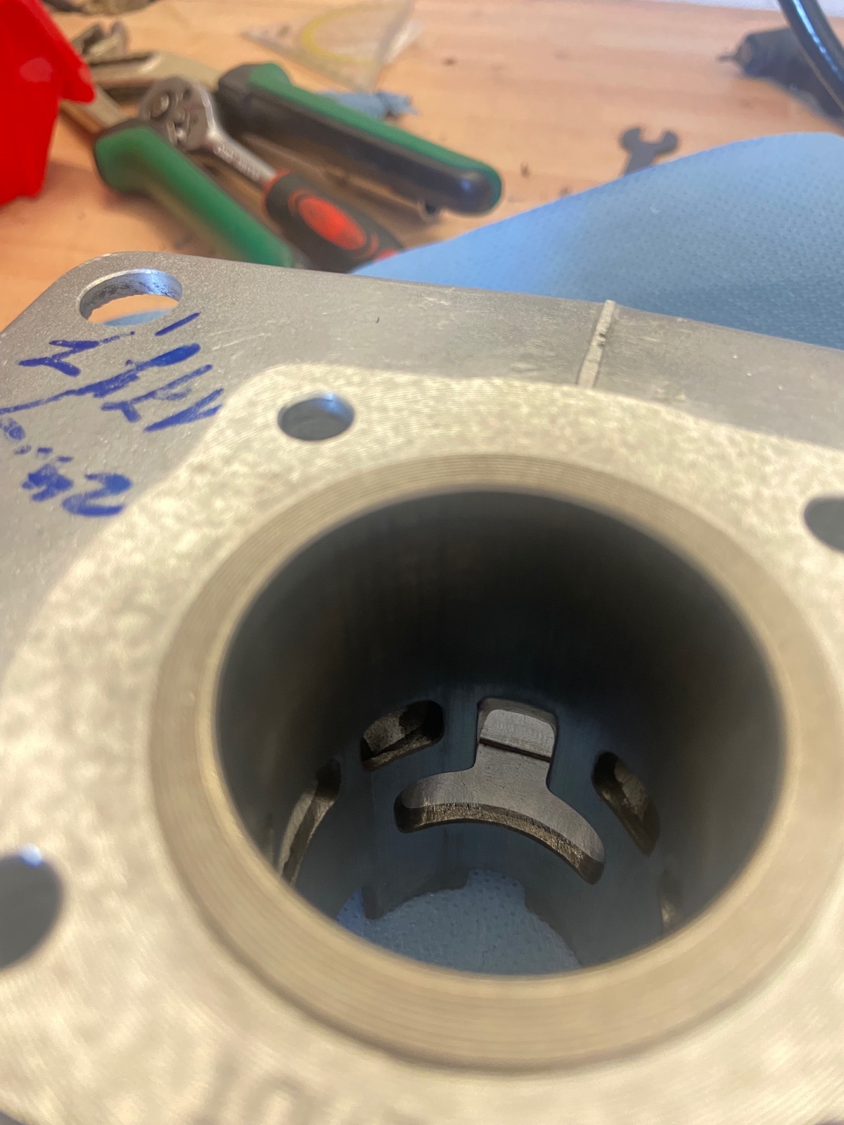 Ja Einlass so hoch fräsen, dass der Kolbenring nicht einfedern kann.