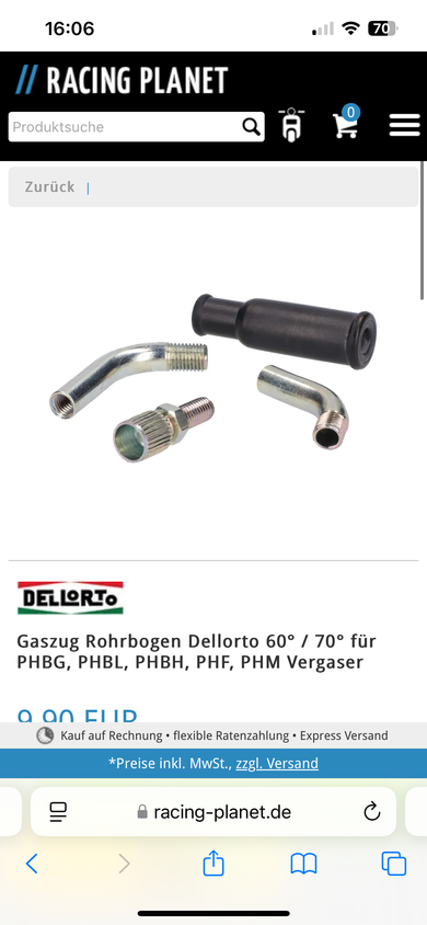 Mikuni VM 24 Rohrbogen Gaszug Vergaserseitig