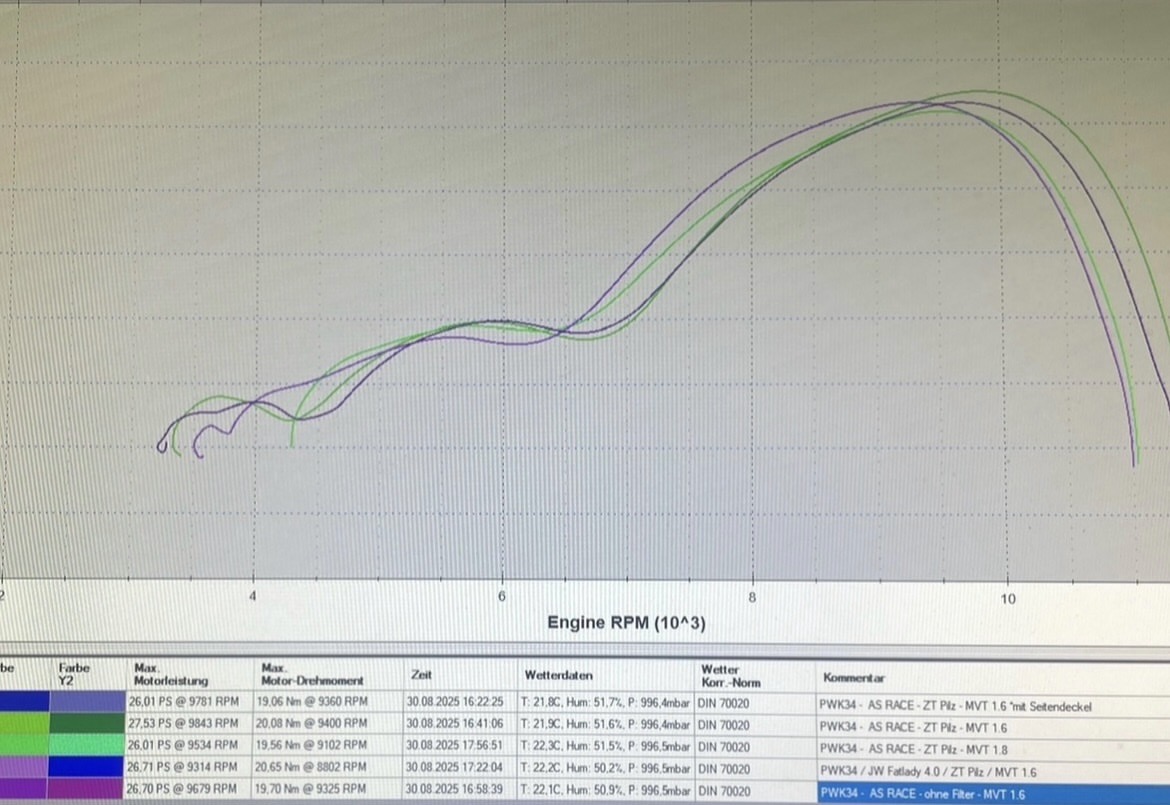 * Drehzahl ca +1000u/min Rechnen über das ganze Band (abnahmefehler wegen MVT doppelzündung)