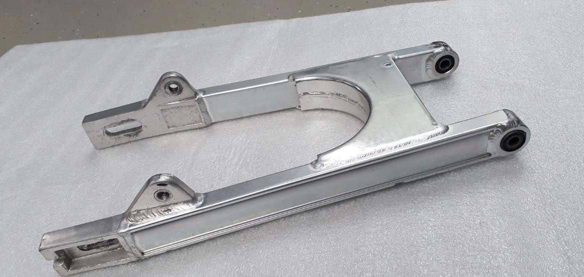 Falls jemand sich die Schwinge aus Alu holt um Leichtbau zu betreiben, ist dem offensichtlich nicht so. Anreiz scheint da eher der Grund etwas „besonderes“ zu haben, eben aus Aluminium, zu sein.