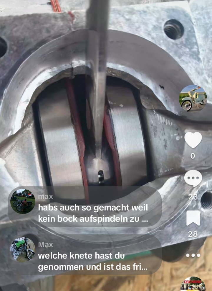 Der Pfuscher braucht allerdings handwerkliches Geschick, da er tief genug dremeln muss, um genügend Platz für den Kolben im unteren Totpunkt zu schaffen. Und das Ganze ohne die Kurbelwelle mit wegzufräsen.