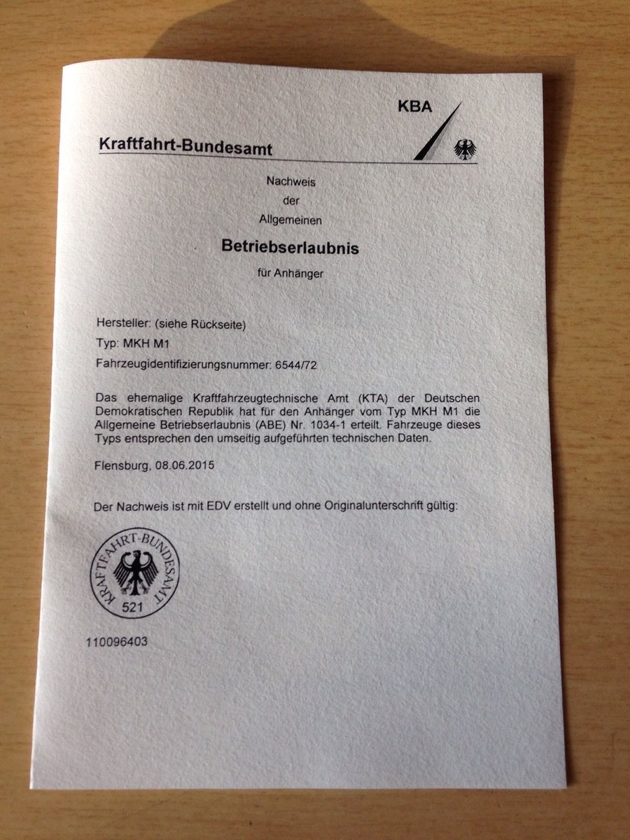 Jetzt habe ich den Anhänger bei mir auf dem Hof stehen und hab kein Typenschild sondern lediglich den Aufkleber (also die Typenbezeichnung). Es sind auch keine Löcher zu sehen wo ein Typenschild aus Blech hätte gewesen sein können.