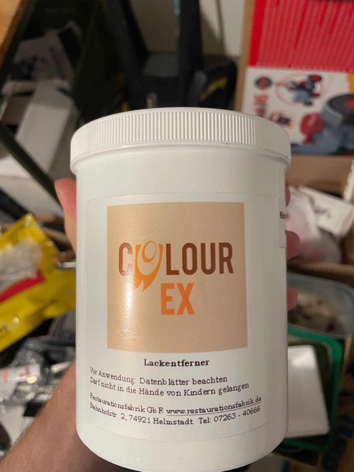 ich war vorhin auf einem Teilemarkt und habe einen Bananentank gekauft. Der Tank hat noch den Ori Lack (Billard Grün) inklusive Abziehbilder, würde jedoch 2 mal überlackiert. Die äußere Silberne Schicht lässt sich abkratzen, jedoch die mittlere Blaue schickt nicht. Hab ihr Tipps wie ich das abbekomme? Ich habe noch Lackentferner (siehe Bilder) zu Hause funktioniert das oder mach ich den Tank so nur Kaputt?