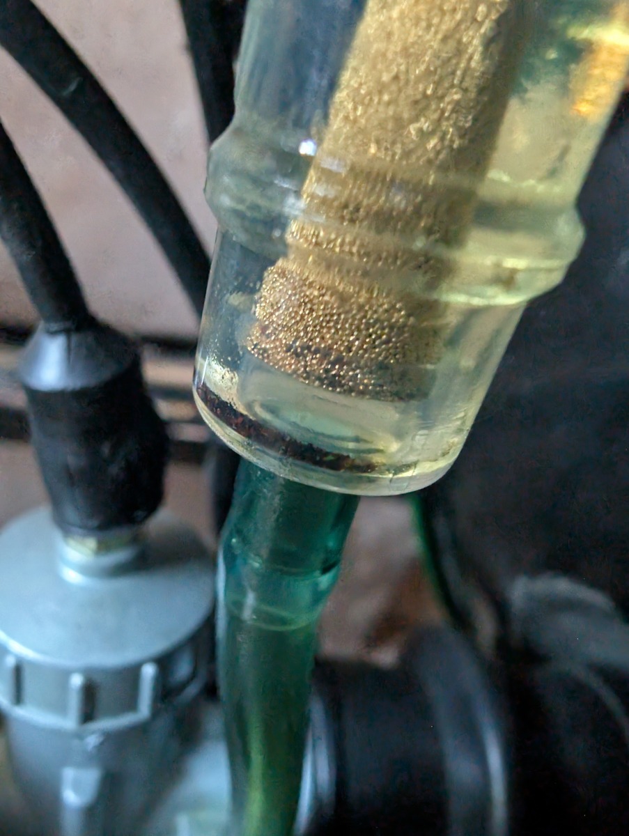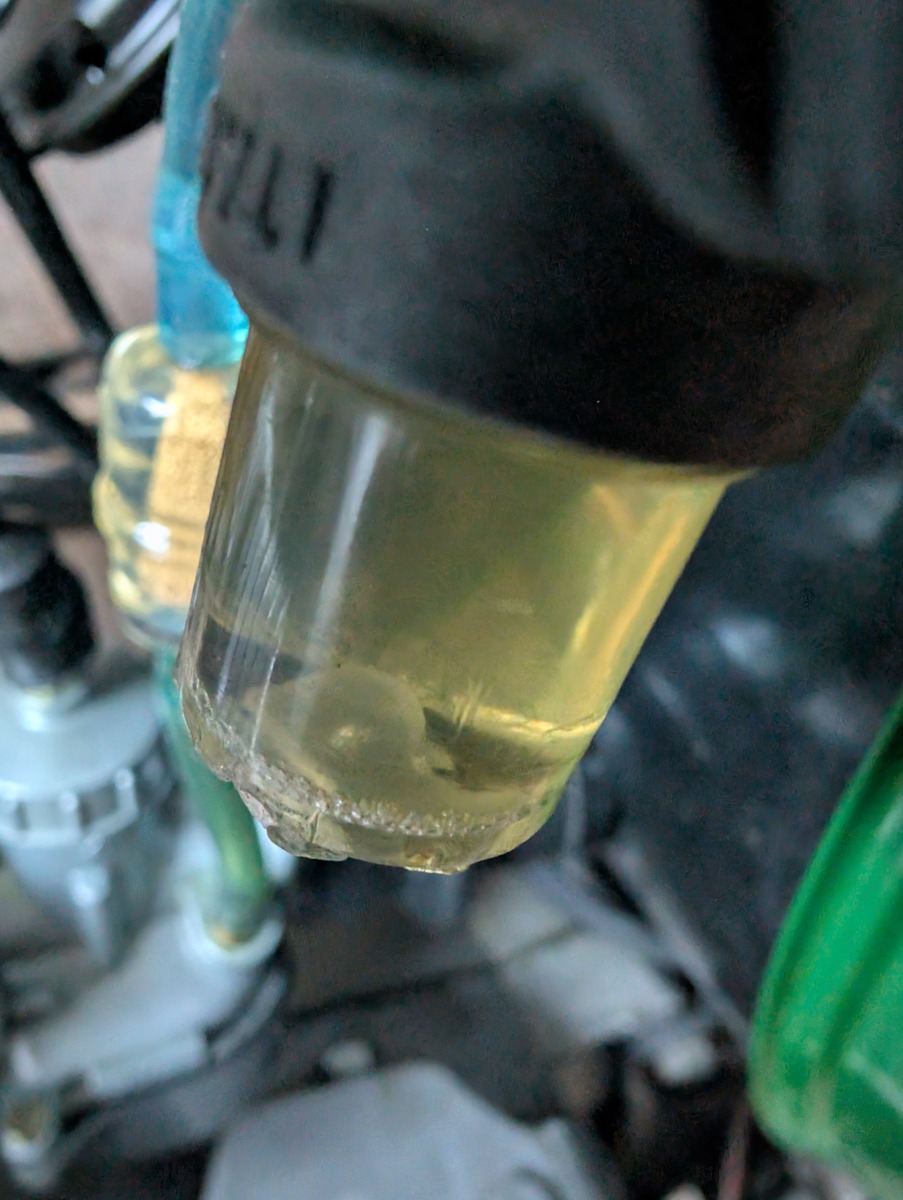 Nun ist mir aufgefallen, dass schon wieder sehr viel Rost oder andere Partikel da gefangen sind. Der Vorbesitzer hat gesagt, dass beim Tank mal eine Versiegelung (oder was ähnliches) fehlgeschlagen ist und auf den Bildern sieht man auch, dass der Rost schon wieder durchgebrochen ist.
