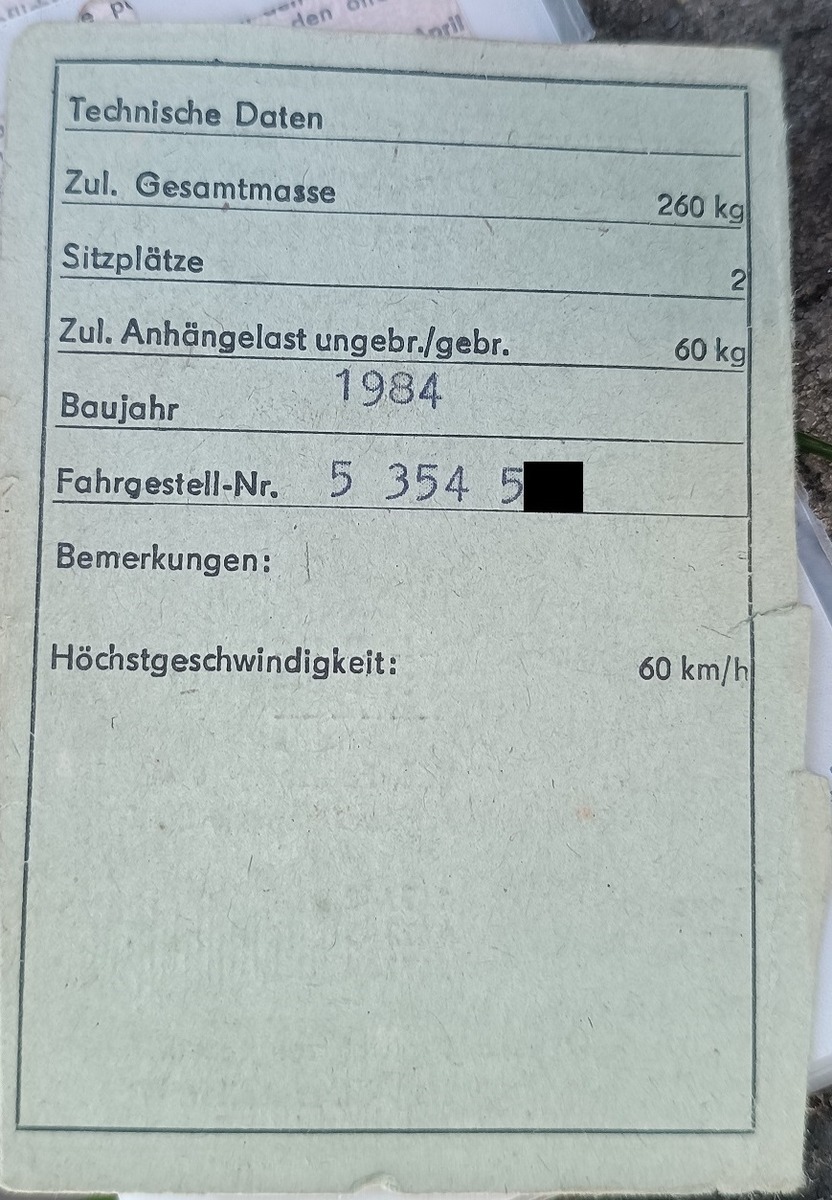 • Das ist ja wirklich das selbe Thema wie bei dem von mir beschriebenen Moped. Ich weiß echt nicht, warum man zu DDR Zeiten teilweise so liederlich mit Rahmennummern und Papieren umgegangen ist.