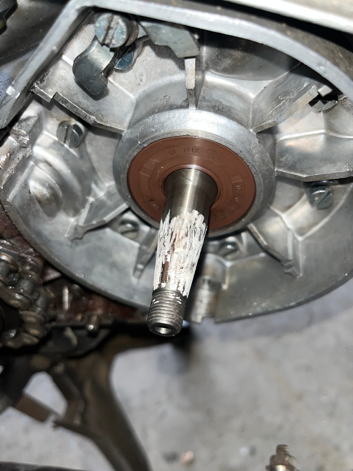 Da Polrad hat sich da auf Konus gedreht, deswegen hat den Keil abgeschert und daher sieht die Kurbelwellen so bescheiden aus.