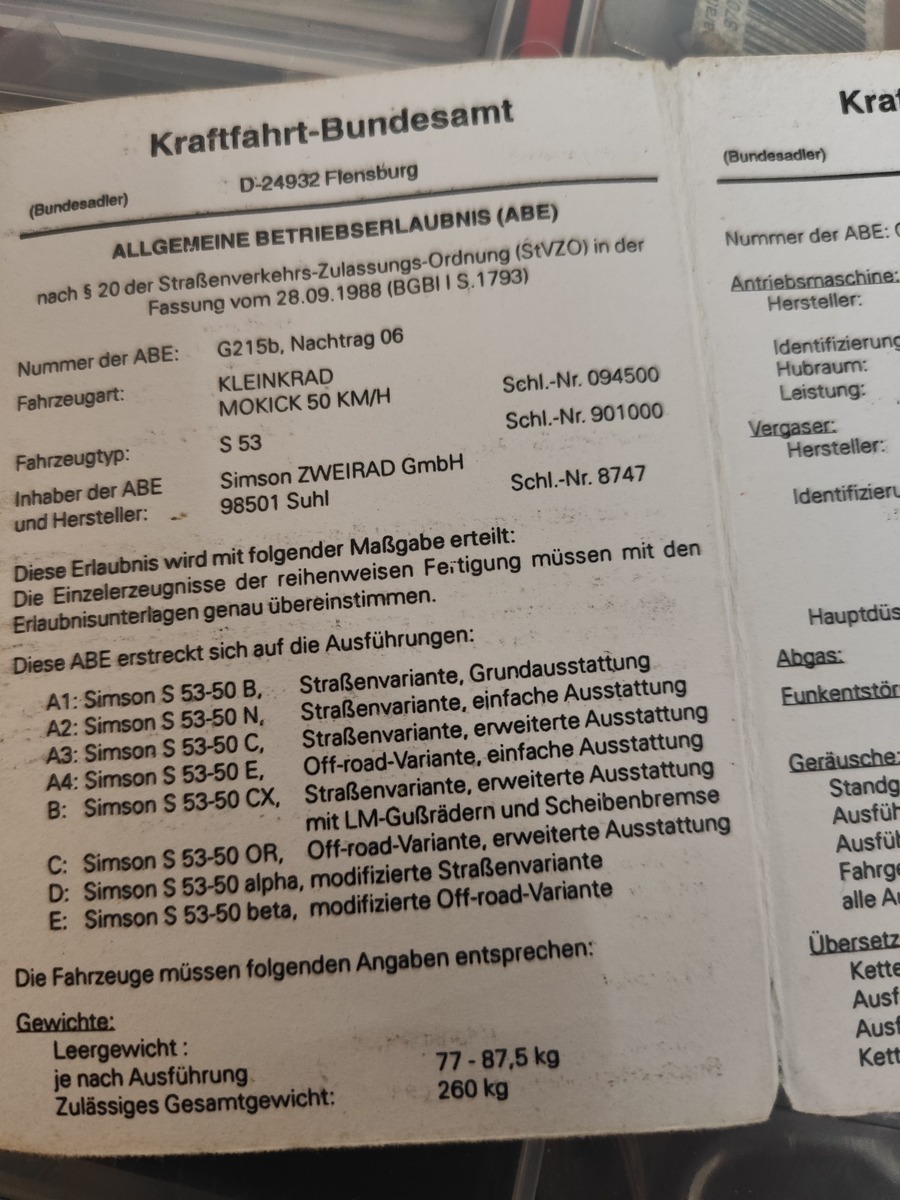 Obergut ist einer von der S51 und da ginge es schon los was eingetragen werden müsste bei einer S53/83.