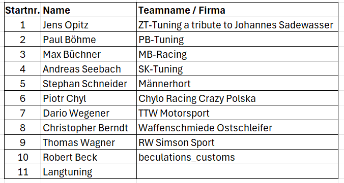 Hier nun die Teilnehmer des LT-Tunerbattle 2026