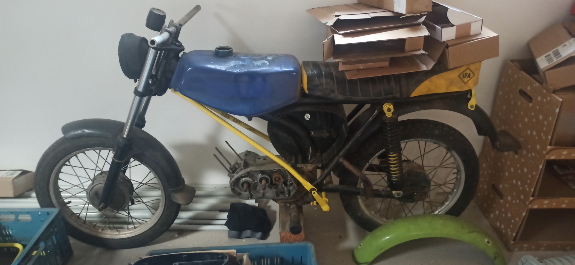 Schon klar. Dann muss halt mal die Resteecke her halten, wenn vorhanden. Ein paar alte Teile dranstecken damits grob die Silouhette eines Mopeds hat. Auspuff, Beleuchtung usw kannste Weg lassen. Hab ich auch schon mehrfach praktiziert. Kein Thema. Quasi Rahmen, Räder, Lenker, Tank Sitzbank, Herzkasten, Motor. Kann alles hohl sein.