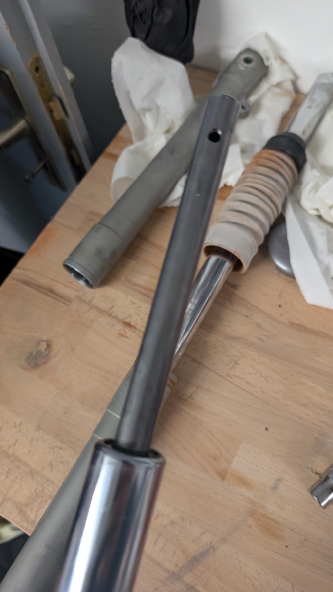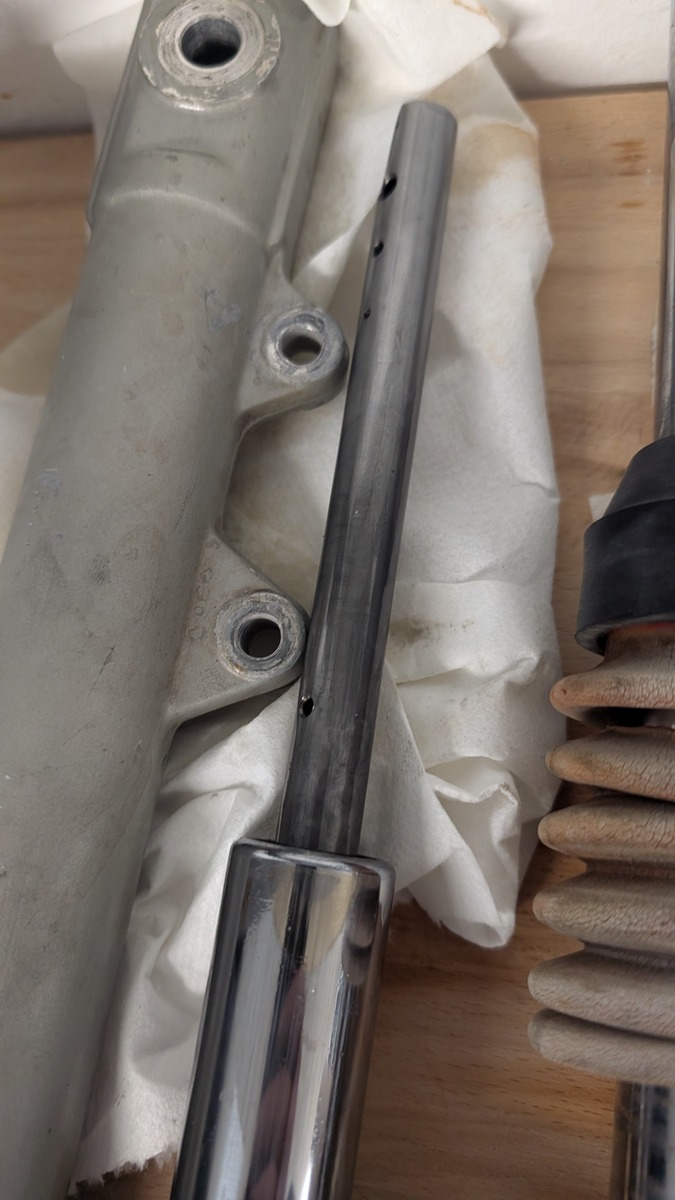 Das Röhrchen braucht hoffentlich auch nicht raus. Wie schon erwähnt, geht das auch nicht ohne weiteres. Auf deinen Bildern ist nur ein Gabelholm ausreichend zerlegt um zu reinigen und neu abzudichten. Meine Frage war ob der zweite mittlerweile auch so weit zerlegt ist. So kannst du dann ja auch erst links und rechts vergleichen. Aktuelle Bilder wären nicht schlecht.