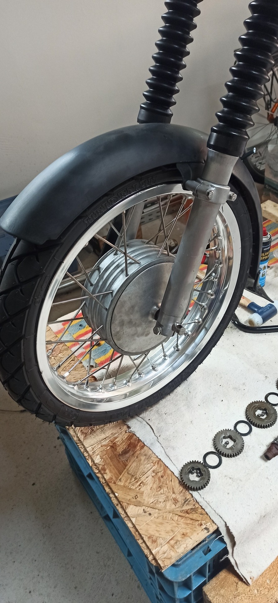 Danke. Du brauchst eine Hülse/Rohr 12/15mm um die Dicke der Achse zu adaptieren in entsprechender Länge. Dann ausmessen ob die Nabe mittig in der Gabel steht. Ggf den Bund an der Ankerplatte etwas kürzen und die andere Seite mit Hülse/Scheiben ausgleichen oder wenn nötig auch den Bund der Abdeckung (Radkörperabdeckung) etwas anpassen. Dann noch eine Schelle am Gabelrohr für die Abstützung und diese in der Länge anpassen. Fertig.